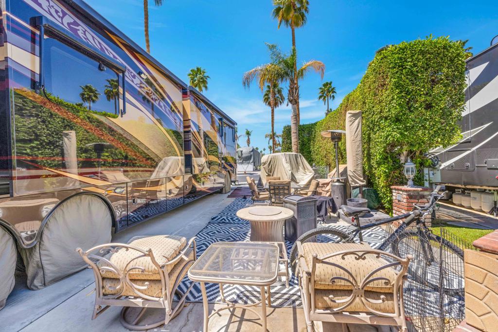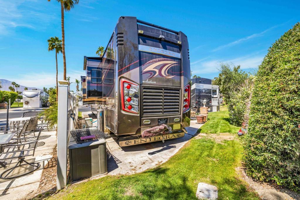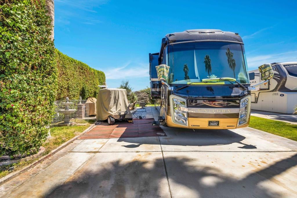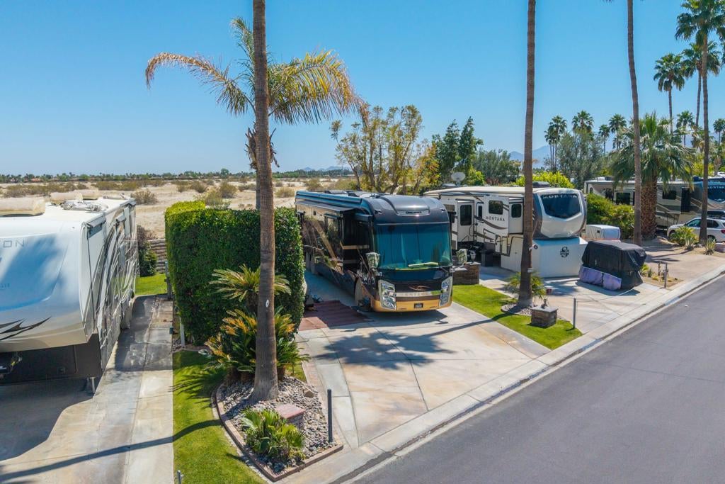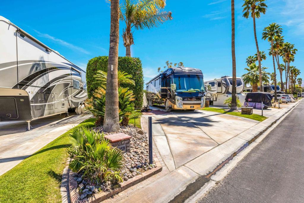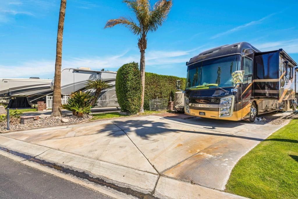 Experience tranquility on this golf course adjacent wall lot, designed for ultimate privacy and relaxation. Mature hedging along the patio side creates a secluded outdoor living space, while a lush greenbelt behind the lot enhances the sense of serenity. Enjoy breathtaking mountain views from the front of the property, providing a stunning backdrop to your desert lifestyle. This lot offers the perfect blend of natural beauty and secluded comfort. Outdoor Resorts Palm Springs is a Five Star RV Resort Community combining luxury with affordability. It is a guard gated resort that sits on 137 beautifully landscaped acres with 27 holes of executive golf, 10 tennis courts, 13 pickleball courts, 8 swimming pools, a fully equipped fitness center, espresso bar, sports bar, beauty salon/barber shop, full-service restaurant, convenience store, 2 club houses, activities, special events and so much more.