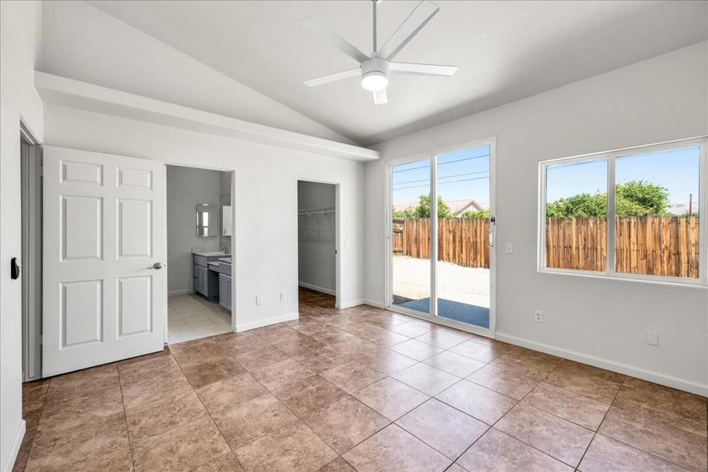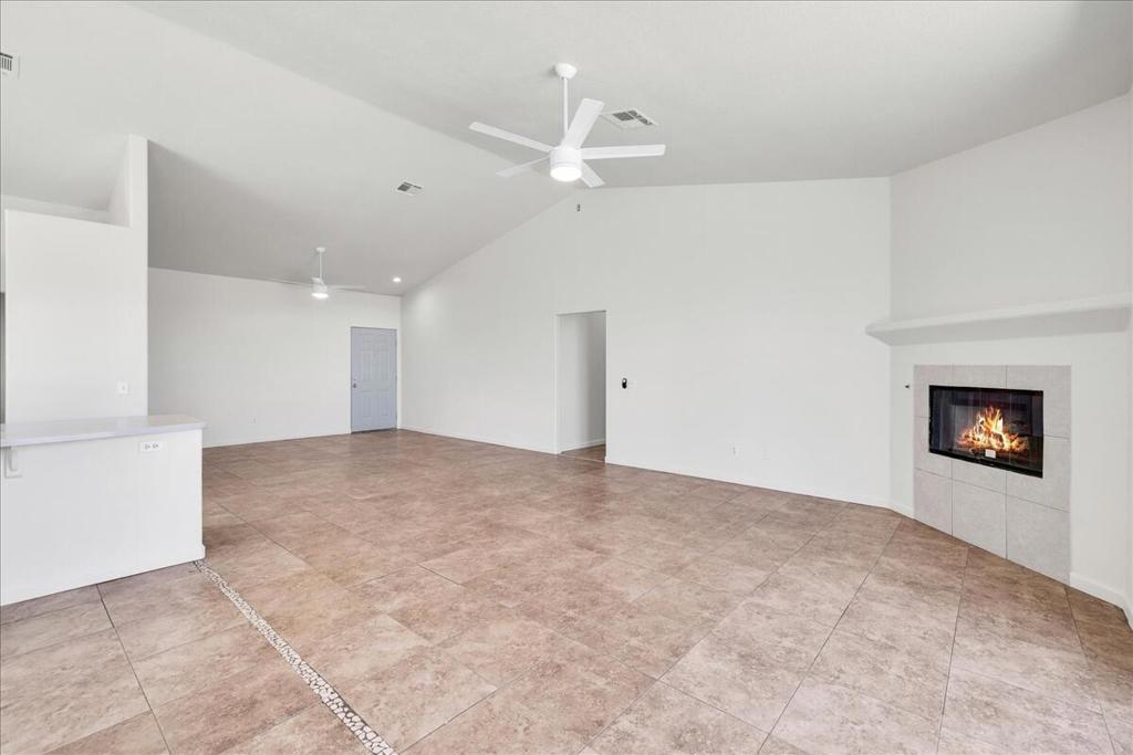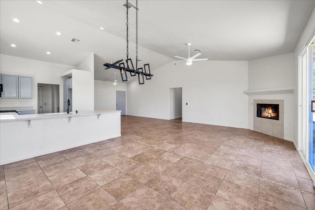 Discover your perfect desert retreat in this beautifully remodeled single-family home in Desert Hot Springs. Built in 2005, this residence offers an inviting open-concept floor plan spanning approximately 1,675 square feet. The remodel includes all new paint inside and out, new hardware, ceiling fans, lighting, faucets and more. The spacious interior features tile flooring throughout, creating a seamless and easy-to-maintain living space. This home has a large great room with a fireplace and sliding glass door that leads to the back yard. The kitchen is a true centerpiece, with all new appliances, and a convenient breakfast bar that opens to a dedicated dining area, perfect for both casual meals and entertaining.The generously sized primary suite is a private sanctuary, featuring dual vanities, a walk-in closet, and a sliding glass door leading to the backyard. This home offers a perfect blend of modern comfort and a serene outdoor lifestyle.Step outside to the large backyard, which you can make your own.