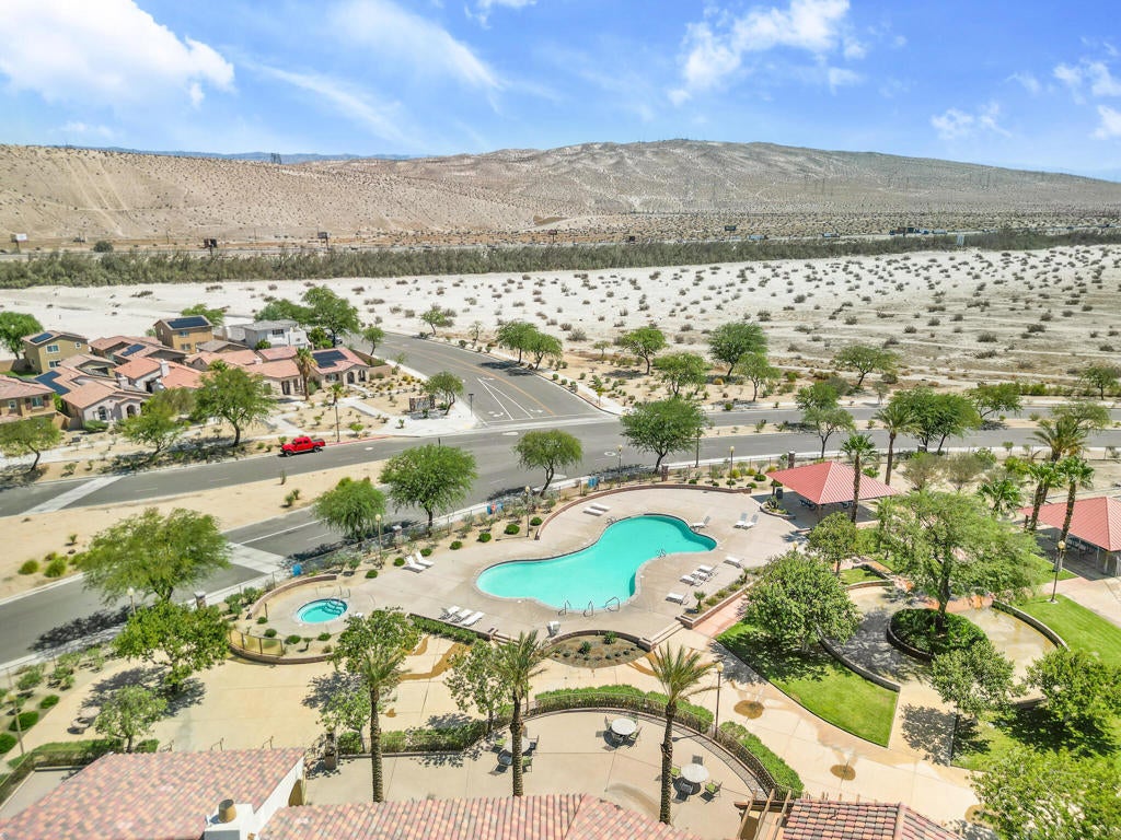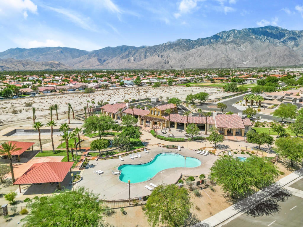 Welcome to your desert oasis in the sought after Verano community where modern design, effortless comfort, and a vibrant lifestyle come together. This stunning newer home offers 3 bedrooms, 3 bathrooms, and a versatile loft space perfect for a media room, office, or creative retreat. Every detail has been thoughtfully curated, from the luxury vinyl flooring and recessed lighting to the serene primary suite with its spacious walk-in closet. Step outside into your private sanctuary, where custom pavers, sculpted desert landscaping, desert friendly plants, and designer lighting create a tranquil setting for morning coffee or evening gatherings under the stars, best of all it's low maintenance. With fully paid solar panels and EV charging readiness, this home blends sustainable living with elevated style. The Verano community is a destination in itself, offering resort-style amenities including a clubhouse, fitness center, sparkling pool and spa, social spaces, pickleball courts, shaded picnic areas, playgrounds, walking trails, splash pads, and more. Perfect for relaxation or staying active, all just steps from your front door. Located minutes from world-renowned Palm Springs. this meticulously cared for home is completely move-in ready. For those seeking a turnkey experience, the designer furnishings from Scandinavian Designs, CB2, and West Elm as well as appliances can be negotiated separately. Discover a home where every detail invites you to relax, entertain, and enjoy life to the fullest. This isn't just a home it's a lifestyle, waiting for you to claim it.