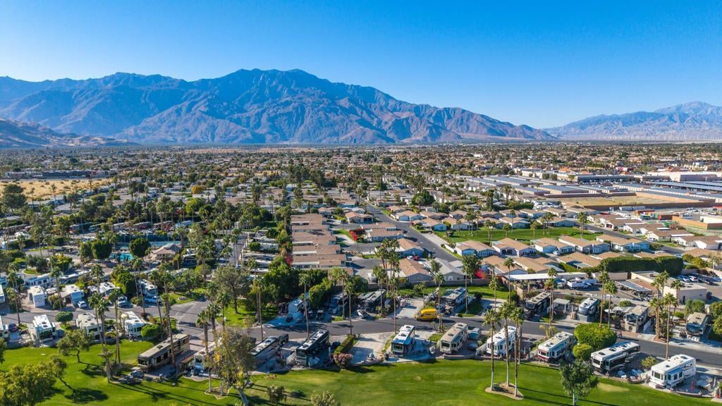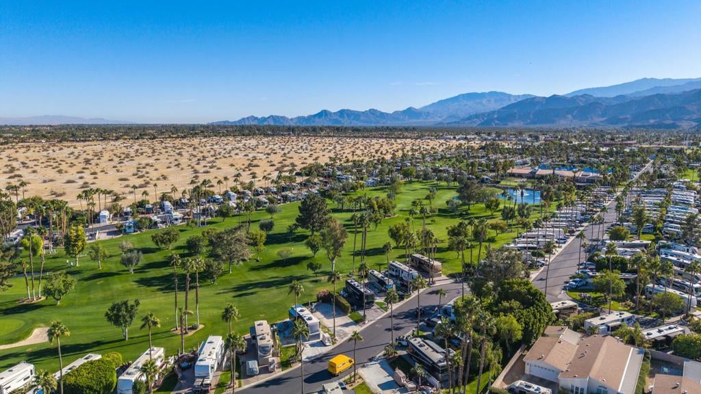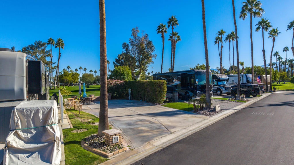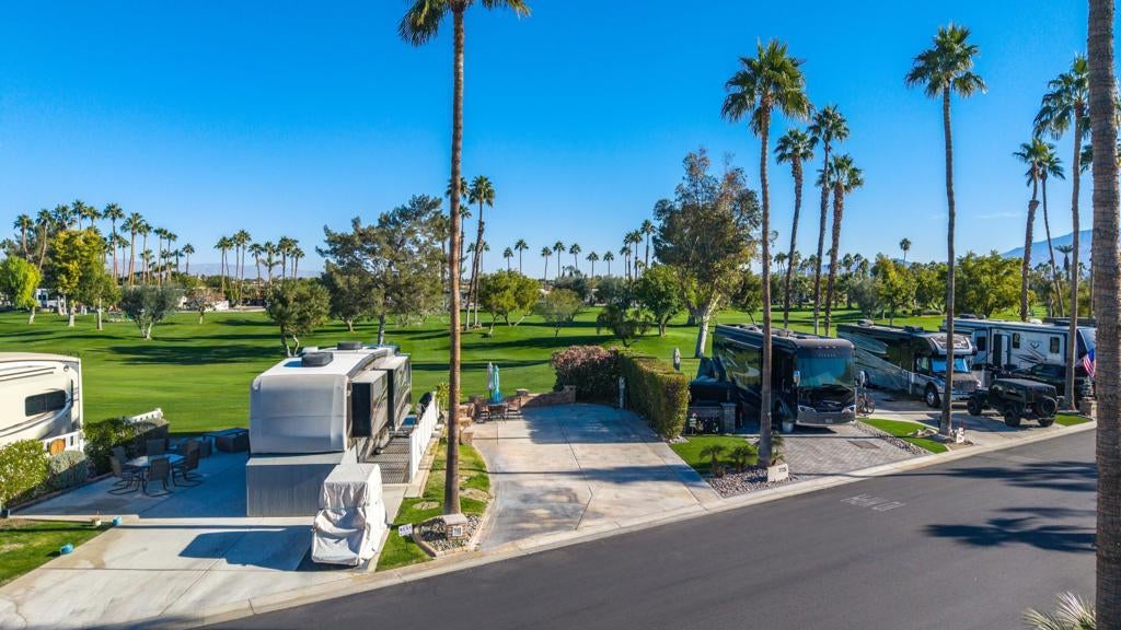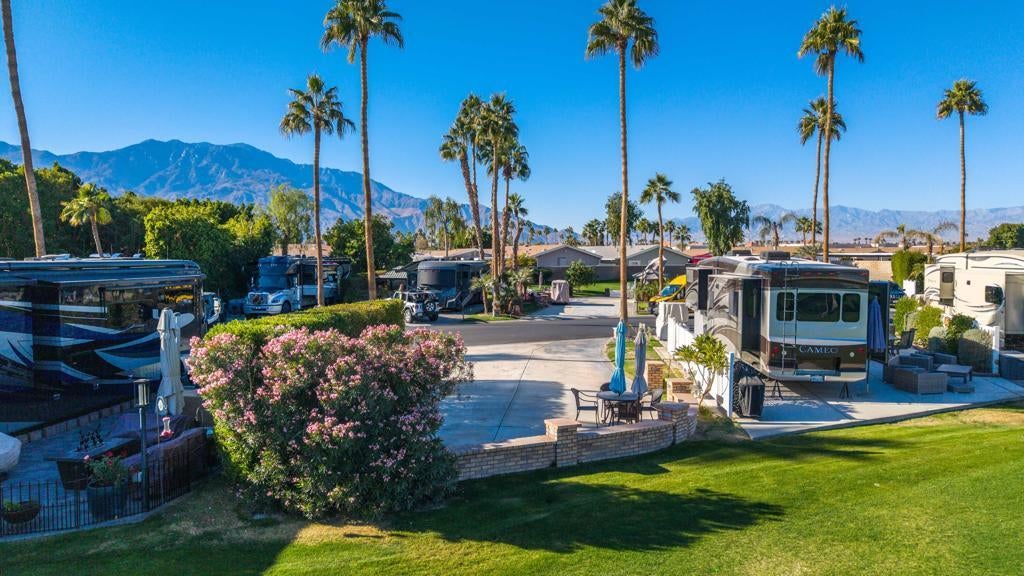 Discover the perfect blend of privacy and breathtaking views on this expanded golf course lot, beautifully situated on the 3rd fairway of the front 18. Enjoy unobstructed vistas of the lush green course and majestic mountains, creating an unparalleled backdrop for relaxation or entertaining. This lot positioned perfectly in the middle of the resort with easy access to all resort activities and amenities. Mature hedging and a good neighbor fence on both sides enhance the sense of seclusion, making this lot an exceptional spot to create your desert retreat. Outdoor Resorts Palm Springs is a Five Star RV Resort Community combining luxury with affordability. It is a guard gated resort that sits on 137 beautifully landscaped acres with 27 holes of executive golf, 10 tennis courts, 13 pickleball courts, 8 swimming pools, a fully equipped fitness center, sports bar, beauty salon/barber shop, full-service restaurant, convenience store, 2 club houses, activities, special events and so much more