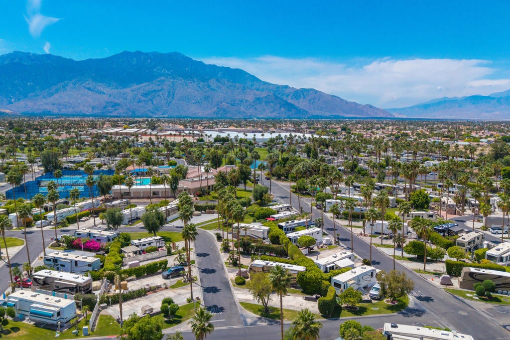 Discover an exceptional opportunity to own a truly beautiful and private interior corner lot. This serene property boasts mature hedging to the rear, creating a secluded oasis. Lush greenbelts and mature trees on both sides further enhance the sense of privacy and create a verdant and tranquil setting. Enjoy the convenience of being located close to Satellite C and the vibrant La Palma Clubhouse, offering easy access to amenities and activities. Outdoor Resorts Palm Springs is a Five Star RV Resort Community combining luxury with affordability. It is a guard gated resort that sits on 137 beautifully landscaped acres with 27 holes of executive golf, 10 tennis courts, 13 pickleball courts, 8 swimming pools, a fully equipped fitness center, espresso bar, sports bar, beauty salon/barber shop, full-service restaurant, convenience store, 2 club houses, activities, special events and so much more.