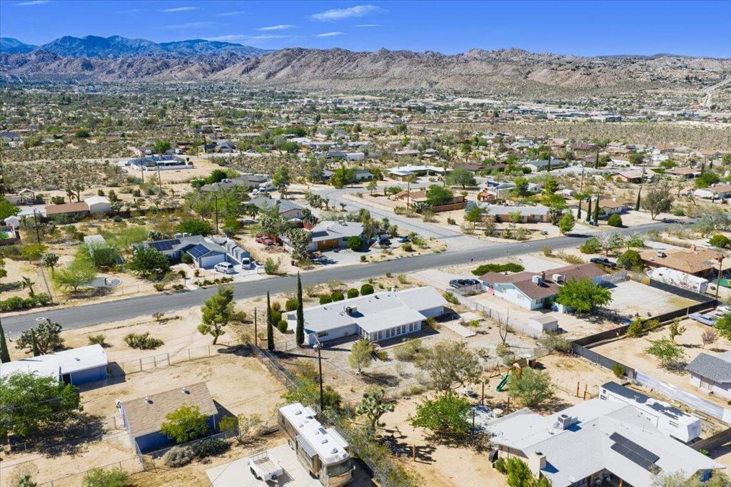 Enjoy the relaxed desert lifestyle. Nestled on nearly half an acre, this 3-bedroom, 2-bath home offers comfort, space, and beautiful natural surroundings. The enclosed patio extends your living space and provides a spot to soak in the desert views, while the fenced backyard is ideal for entertaining, stargazing, or simply unwinding under the open skies. With all bedrooms on one level and a roomy 2-car garage, this home offers easy living in a serene setting just minutes from local shopping, dining, and Joshua Tree National Park.