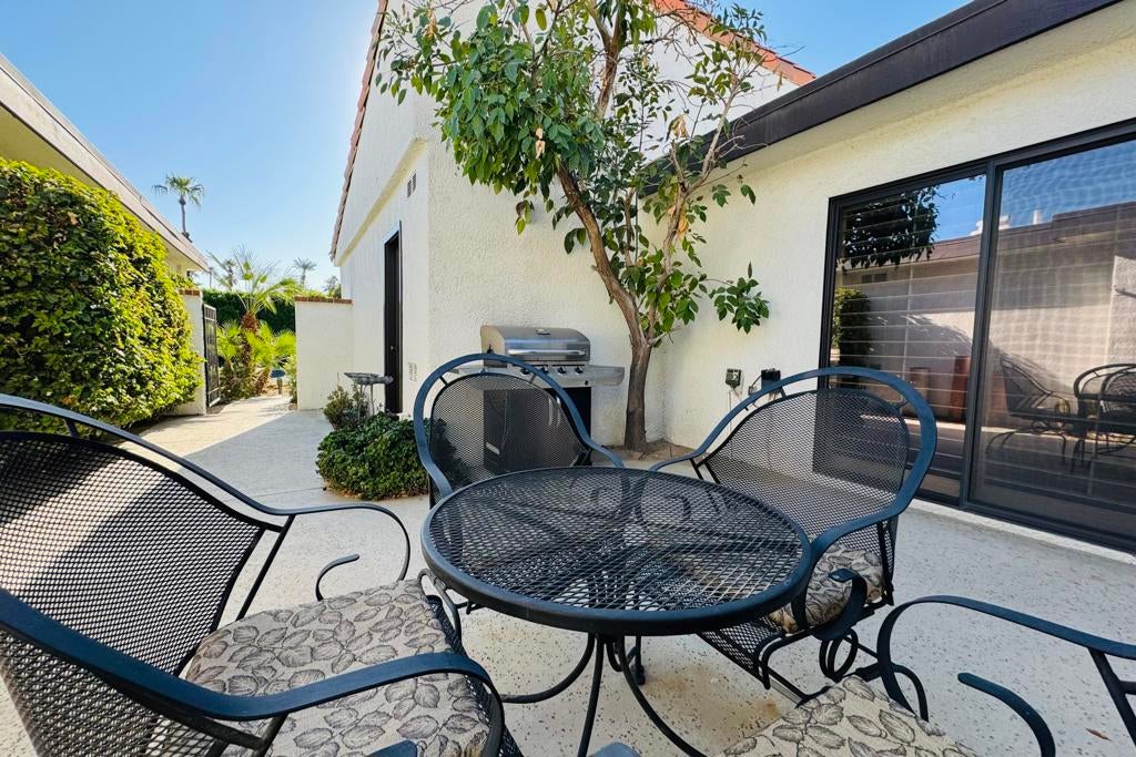 Welcome to Rancho Las Palmas, a gated community in one of Rancho Mirage's most desirable locations, offering the perfect blend of resort-style living and everyday convenience.Ideally situated just moments from The River--featuring popular restaurants, boutique shopping, and a movie theater--and adjacent to the Omni Rancho Las Palmas Resort & Spa, where guests can enjoy world-class accommodations nearby.This turnkey furnished, two-bedroom retreat boasts an open floor plan with a bright and airy living/dining area, a private courtyard perfect for morning coffee, and an open patio showcasing serene lake and mountain views. Two sliding glass doors provide seamless access to the back patio, creating an effortless indoor-outdoor flow--ideal for relaxing or entertaining.Residents enjoy access to multiple community pools and spas, perfect for soaking up the sun and enjoying the desert lifestyle.Available for the 2025/2026 season, this home offers a peaceful desert escape in a secure, amenity-rich community in the heart of Rancho Mirage.