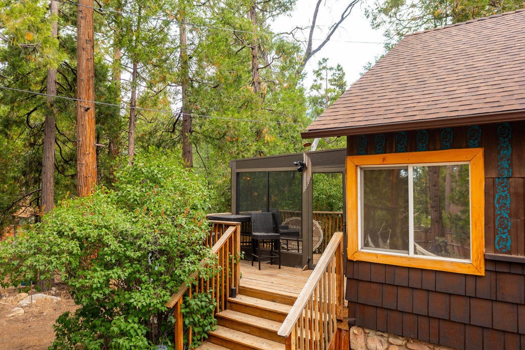 Rare 2-on-1 Opportunity with Versatile CR Zoning - Income, Charm, and Business Potential!Welcome to this creatively renovated Southern-chic property, featuring a beautifully updated 3 bed, 2 bath single-level cabin and a detached 1 bed, 1 bath rental known as the ''Lavender Cottage.'' Zoned CR, this unique property is perfect for those seeking a home-based business opportunity with signage allowed on South Circle Drive, a walk to town, and nearby school, all with flat easy access --plus the benefit of long-term rental income. The Main Cabin exudes warmth and personality with custom woodwork, antique accents, original wood flooring, and locally sourced logs integrated throughout. Each bedroom is thoughtfully separated for privacy. Enjoy the blend of artsy paint finishes, soulful southern touches throughout, wood-burning stove, forced air heating, and solar panels. Propane benefits are water heater and cooktop, alongside the heating. A charming tin-roofed mudroom/laundry entrance adds function and flair--especially inviting on rainy days.Lavender Cottage has been tastefully renovated with a mix of masculine and feminine finishes. Features include separate utilities, fenced yard, and dedicated parking. Separate utilities come in form of different meters with Edison, WestCoast Propane rented tanks for each unit, and water submeter on cottage. Ideal as a rental, guest house, or private office. Both structures boast new roofs, custom interior/exterior paint, updated plumbing and electrical, dual-pane windows, improved insulation, and remodeled kitchens and bathrooms. The fully fenced .46-acre lot is flat and usable, with a plow-friendly circular driveway, with corners previously marked. This property is on sewer with local Idyllwild Water District. Best of all just a short walk to town.Whether you're looking for passive income, a private residence, or a mixed-use investment, this mountain gem has it all. Sold unfurnished.Seller/Owner is Licensed Real Estate Broker.