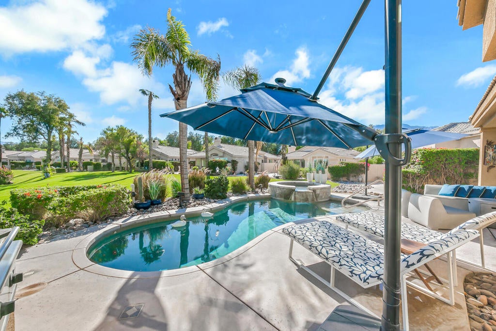 Discover the perfect blend of privacy, upgrades, and scenic beauty at 67361 N. Laguna, a stunning turnkey furnished 3-bedroom, 3-bath home offering some of the best views in the community.Ideally situated near the 6th green on the prestigious Cielo course, this south-facing gem showcases breathtaking views of the pond, fairway, and surrounding mountains--all while enjoying all-day light and warmth without the interruption of golfers.Set on an oversized lot, the home features a private pool and spa, plus a charming side yard ideal for dining and entertaining. Inside, the third bedroom includes a retreat/office area for flexible living. Thoughtfully maintained and updated, the property has been freshly painted, includes all-new appliances, and features a brand-new AC/furnace system installed in October 2024--making it completely move-in ready. Best of all, this home is offered turnkey furnished, so you can step right into the lifestyle without lifting a finger. The land lease has already been extended through 2069, providing long-term peace of mind and added value.Residents of this community enjoy resort-style amenities including multiple pools, three 9-hole golf courses, tennis courts, pickleball, a fitness center, and a clubhouse with dining--ensuring there's always something to enjoy.Perfect as a full-time residence, seasonal retreat, or investment property, this home has a proven rental history, commanding $6,500/month during season.Live the lifestyle you deserve at 67361 N. Laguna--where turnkey luxury, comfort, and panoramic views create an exceptional desert living experience.