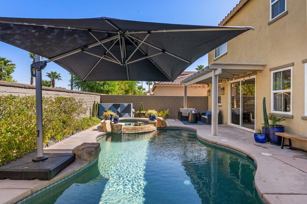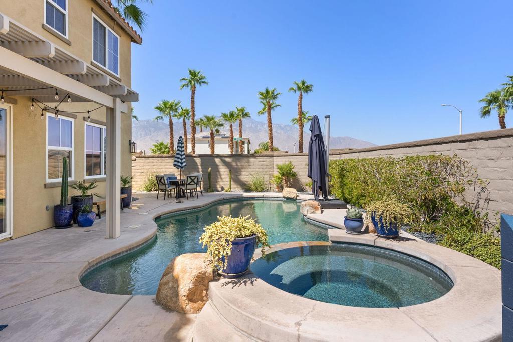 Welcome to Cimarron Cove, one of Cathedral City's most sought-after gated communities. This beautifully maintained 3-bedroom, 2.5-bath home offers 1,851 ft. of light-filled living with recently updated finishes throughout. The open floor plan features a spacious great room with fireplace, a stylish kitchen with ample storage, and seamless indoor-outdoor flow.Sleek style and sophistication set against breathtaking mountain views, enjoy peace of mind with recently installed solar, fresh landscaping, and a private backyard with pool and spa--perfect for entertaining. The primary suite offers a spa-like bath, while two guest bedrooms provide comfort and flexibility. Additional highlights include a two-car garage, indoor laundry, and energy-efficient upgrades.Cimarron Cove residents enjoy a sparkling pool, spa, and manicured grounds--all just minutes from shopping, dining, golf, and downtown Palm Springs. This move-in ready gem blends style, efficiency, and an unbeatable location.
