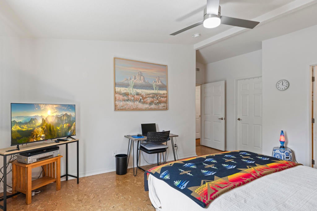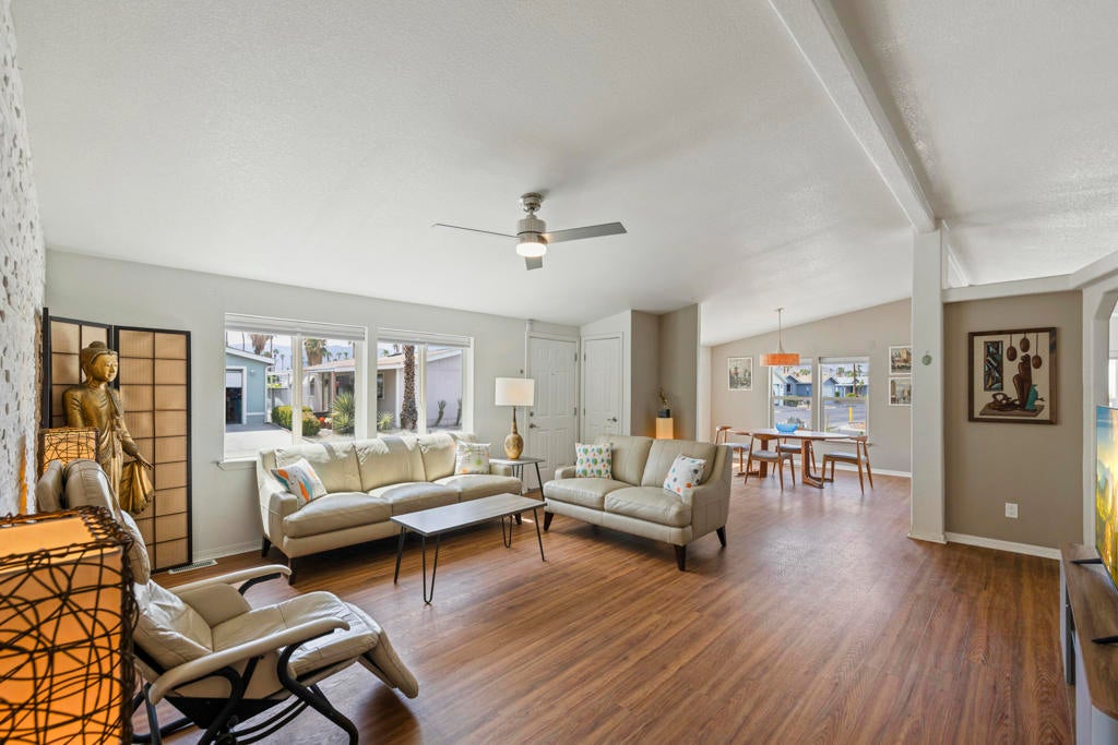 As you enter the Great room, you'll love the white quartzite stack stone accent wall in the living room. This move-in ready home has easy to maintain laminate flooring with cork flooring in the bedrooms and office. Uplifting cathedral ceilings make the open floor plan feel even more spacious. 2 bedrooms plus an office that could be easily transformed into a 3rd bedroom. Double pane windows with custom light/dark shades are sure to save you money on your electric bills. Spacious and private side yard for indoor/outdoor living. Spectacular panoramic mountain views. The Canyon is a premier park with 2 community pools, spas, billiard room, library, gym, shuffleboard building and dining hall. You will love living in this home and in this community.