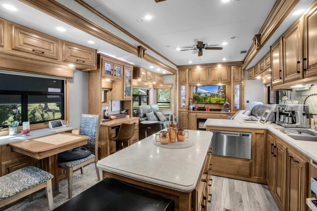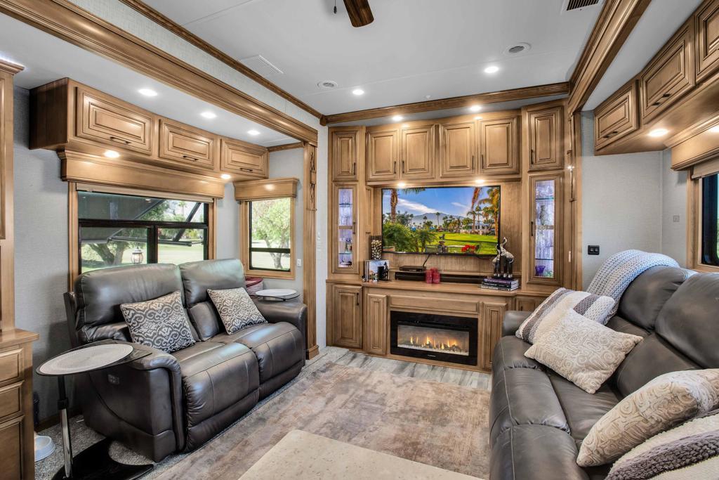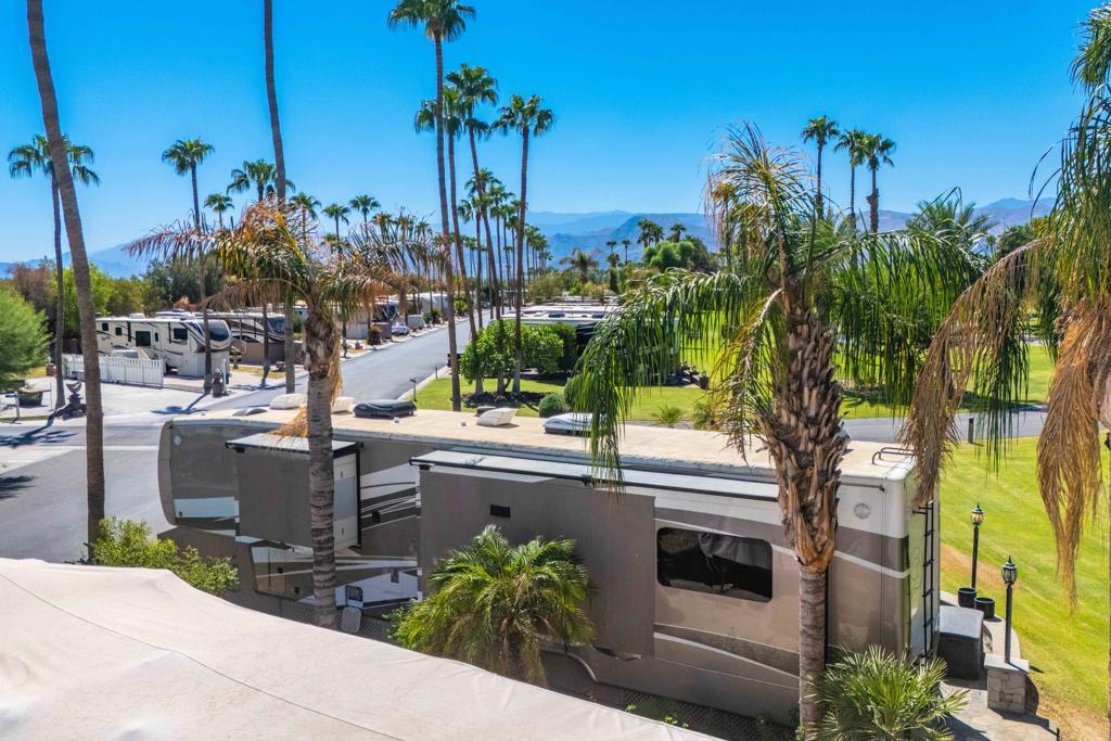 This beautiful golf course lot offers privacy and stunning views in the heart of Outdoor Resorts Palm Springs. Expanded with pavers, the patio side is bordered by fencing and mature hedges, creating a perfect, private space for outdoor relaxation. Enjoy panoramic golf course and mountain views from this prime location. The RV is a pristine 2019 DRV Mobile Suites Santa Fe, offering luxurious living in immaculate condition. Whether you're relaxing on the private patio or enjoying the resort's many amenities, this lot/RV package is move-in ready and ideal for your winter retreat. Ideally situated, this lot is just a short distance from the La Palma Clubhouse, tennis courts, fitness center, pool, and spa, ensuring that top-tier amenities are always within reach. Outdoor Resorts Palm Springs is a Five Star RV Resort Community combining luxury with affordability. It is a guard gated resort that sits on 137 beautifully landscaped acres with 27 holes of executive golf, 10 tennis courts, 13 pickleball courts, 8 swimming pools, a fully equipped fitness center. beauty salon/barber shop. full-service restaurant. convenience store. 2 club houses, activities, special events and so much more