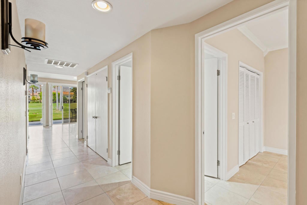 Absolutely beautiful pristine unit. two bedrooms and two beautiful baths. Spacious living room with dining area off kitchen. Lovely tile floors throughout. Kitchen has top of the line stainless steel applicances. , recess lighting, plantation shutters and crown molding in the bedrooms.ceiling fans.Washer and dryer in unit.The condo faces west with wonderful golfcourse and mountain views. Its located on the fifth tee box of the Nicklaus Tournament course. Steps away from the community pool and spa.Two car garage.PGA West is a luxury gated community very near shopping, Old Town La Quinta, The La Quinta Resort and Spa. There are two golf courses within PGA West that you can pay to play.Wonderful indoor and patio dining at Ernies at the Tournament clubhouse