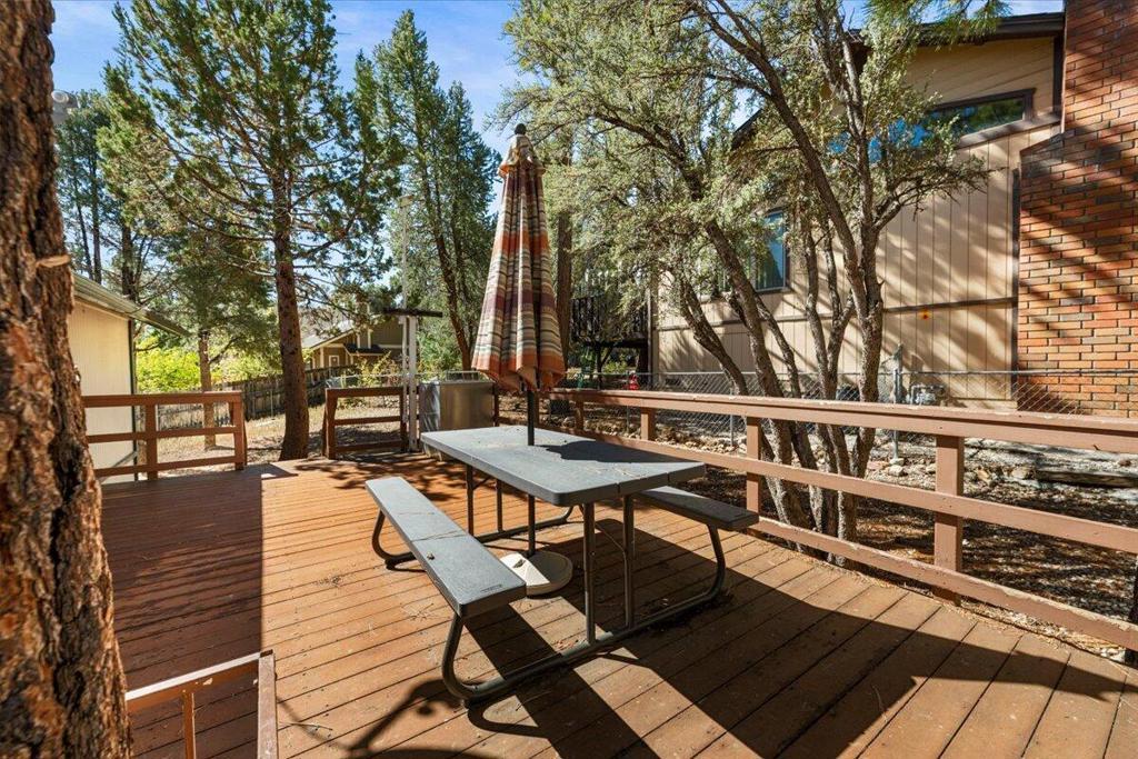 Nestled on an expansive corner lot in the coveted Whispering Forest neighborhood of Big Bear City, this beautifully maintained single-level retreat offers the perfect blend of serenity, space, and accessibility. Inside, you'll find 3 spacious bedrooms, 2 bright full baths, and a convenient hallway laundry closet. The oversized kitchen provides abundant cabinetry, generous counter space, and direct garage access--ideal for full-time living or a mountain getaway. The inviting living room features vaulted, beamed ceilings and large windows that fill the space with natural light. A charming brick fireplace with raised hearth creates the perfect setting for cozy winter evenings. One of the standout features of this property is its large, tree-studded corner lot, offering fantastic outdoor appeal with a mix of mature and young pines, ample guest parking, and a spacious storage shed for all your mountain gear. Enjoy a covered front entry deck and a generous rear deck--perfect for entertaining or relaxing under the stars. Located just minutes from the ski slopes, Big Bear Lake, the Village, and miles of hiking and biking trails, this home delivers exceptional convenience while still being set far enough from the hustle and bustle to enjoy true mountain tranquility. Whispering Forest is known for its peaceful atmosphere, low-traffic streets, and easy access to the National Forest--making it one of Big Bear's most desirable areas. Whether you're seeking a full-time mountain haven or a weekend escape, this move-in ready home offers comfort, charm, and an unbeatable location. Come enjoy crisp autumn mornings, snowy winter nights, and sun-drenched summer afternoons in your own Big Bear retreat. You won't want to miss it.