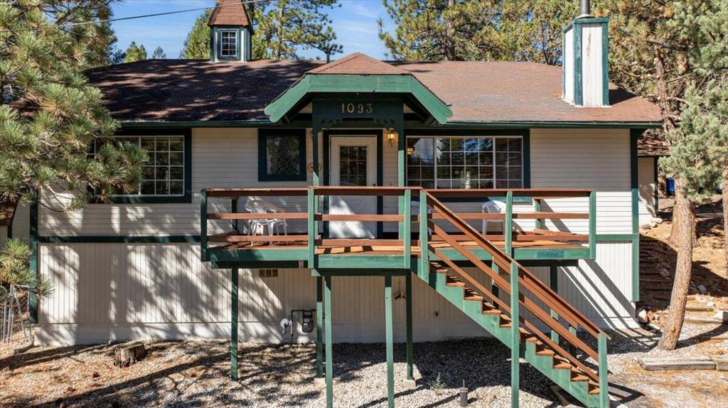 Nestled on a prime corner lot in the coveted Whispering Forest neighborhood of Big Bear City, this beautifully maintained single-level retreat offers the perfect blend of serenity and accessibility. Inside, you will find 3 spacious bedrooms, 2 bright full baths, with a designated laundry closet in the hall. Enjoy an oversized kitchen with abundant cabinetry, plenty of counter space, and direct garage access. The spacious living room features vaulted, beamed ceilings and expansive windows to flood the living space with natural light. Cozy up to your beautiful brick fireplace with raised hearth on those chilly mountain evenings. Fantastic outdoor appeal set on a desirable large corner lot surrounded by a mix of mature and young pines with ample guest parking in front and in the driveway by the garage. Large storage shed in the back for all your gear. Covered front entry deck and spacious rear deck ideal for dining al fresco or relaxing under the stars. Whether you're seeking a full-time mountain haven or a weekend escape, this move-in ready home delivers comfort, charm, and location. Come enjoy the mountains with crisp autumn mornings, snowy winter nights, and sun-drenched summer afternoons- all just minutes from the ski slopes, lake, and Village with tons of hiking trails nearby. You won't want to miss it!