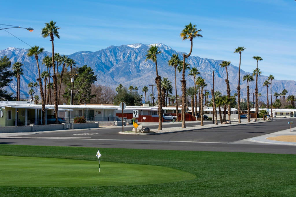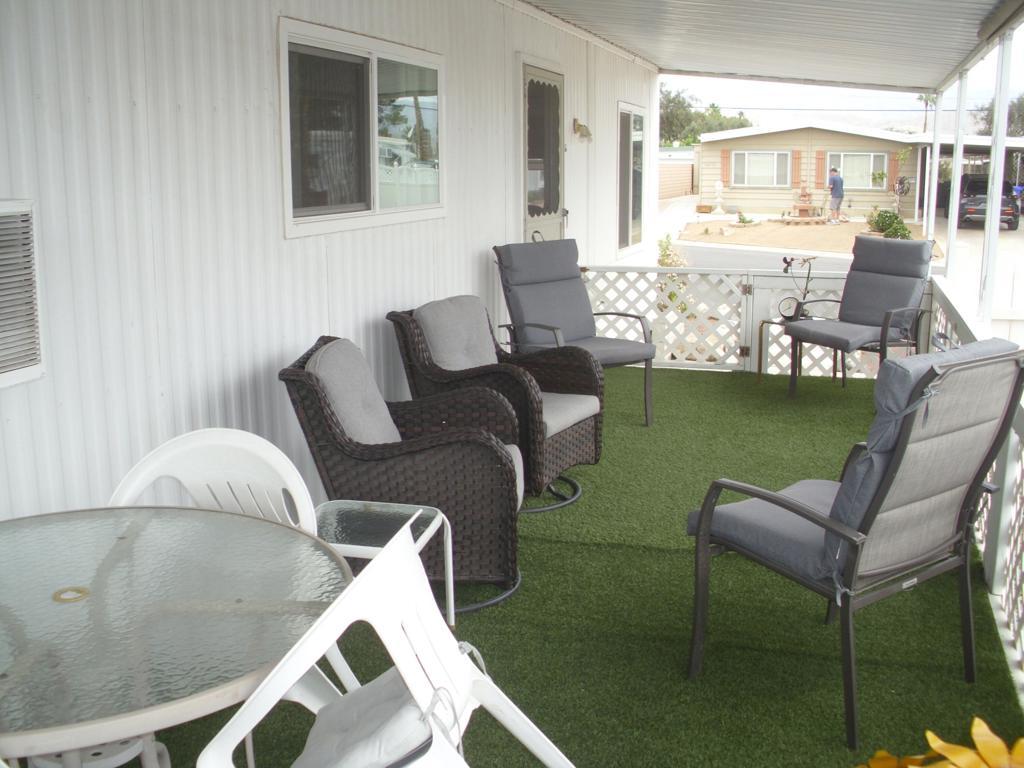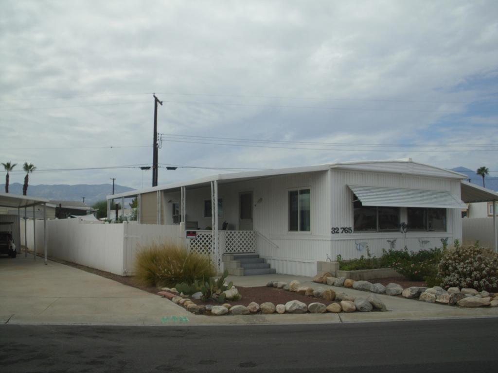 This well-maintained Double wide manufactured home 2-bedroom 1 & bath with large back yard. Close walking distance to the Club house. Offered Furnished. Very bright a clean. Many upgrades through the years. Windows and Bathrooms upgraded. Detached golf cat shed. Golf cart is negotiable. Tri Palm Estates is a 55+ community with many social activities, Low HOA fees allow 2 owners on deed all the golf they can play on our 2 fine Golf courses, Shuffleboard courts, Tennis and pickleball courts, 2 pools, 2 hot tubs, Restaurants and Bar. Close to Costco, Sam's Club, Walmart, Home Depot, Lowe's, And many fine restaurants