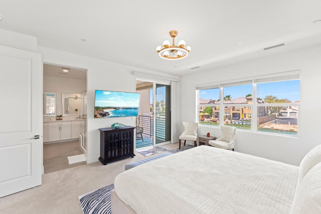 PRICE REDUCED $50,000! Terra Lago Lakefront estate recently built in 2022. Rare 5 bedroom 4 bath plus office that can comfortably sleep 14+ for maximum enjoyment or maximum income as a resort rental. The entire property has been renovated and set up to be a luxurious lakefront rental with designer furniture, huge TVs, arcade machines, and completely developed backyard. The large primary suite offers a private balcony overlooking the serene lake and pool, with panoramic mountain views that will take your breath away. Smart home features including smart entry, thermostats, EV charger, and solar panels on the roof. Residents enjoy resort-style amenities, including a community pool, clubhouse, fitness center, and an 18-hole golf course. Plus, HOA dues cover free Internet, cable TV, gym, community center, and 24-hour guard-controlled access. Whether you're looking for a luxury residence, an Airbnb, or a 1031 exchange, this home offers it all very close to Coachella Valley's best events, including Coachella Music Festival, Stagecoach, Polo, Palm Springs, Joshua Tree National Park, and major Casinos. Don't miss the opportunity to make this extraordinary lakefront retreat your own! Short-term rentals allowed--excellent investment potential!