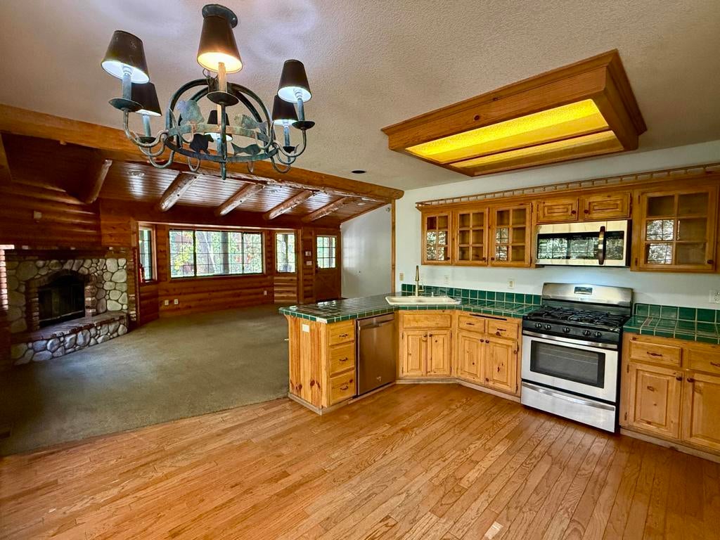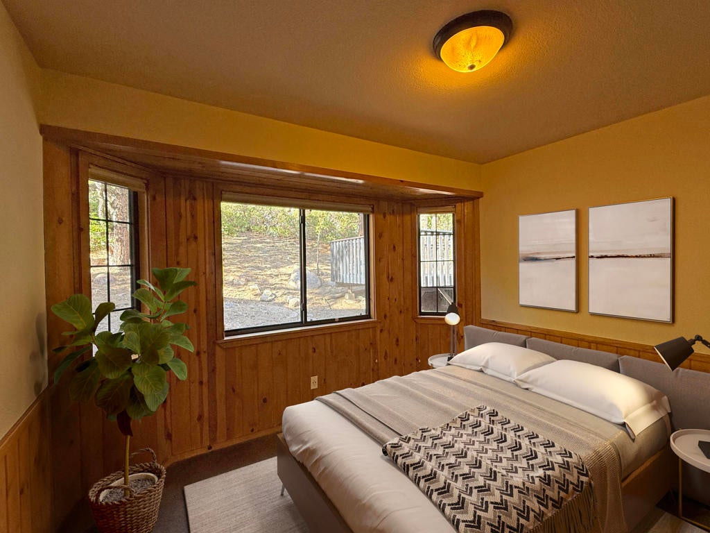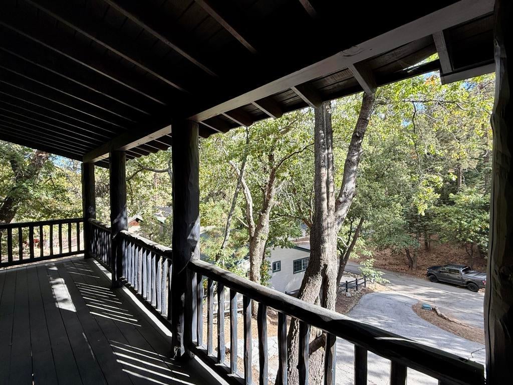 A true mountain escape in a premier Moonridge location--just a block from Bear Mountain Ski Resort and steps from the National Forest. This log-sided retreat offers an authentic mountain feel in a peaceful treehouse-like setting. Nestled on a heavily treed lot, it's the ideal spot for both adventure and relaxation. The inviting great room features a rock/brick fireplace, wood-beamed ceilings with recessed lighting, and log-accented walls--warm, open, and designed for cozy gatherings. Large windows frame the surrounding oaks and pines and bring the outdoors in. The eat-in kitchen offers glass-faced cabinets, tile counters, and plenty of space to prepare meals while enjoying the view. Each bedroom has wood accents and wainscoting, creating comfortable spaces for family and guests. A covered front porch sets the tone for a true cabin escape, while the spacious back deck is perfect for barbecues, entertaining, or simply soaking in the serenity of the forest. Located just one block from Bear Mountain and steps to hiking and biking trails, this home provides quick access to year-round recreation. The lake, golf course, and Village shops and restaurants are only a short drive away, making it convenient for both locals and visitors alike. With its sought-after Moonridge location, log-style design, and remarkable setting, this property would make an excellent weekend getaway, and/or high-demand vacation rental. A rare opportunity to own a true Big Bear cabin in one of the most desirable areas on the mountain.