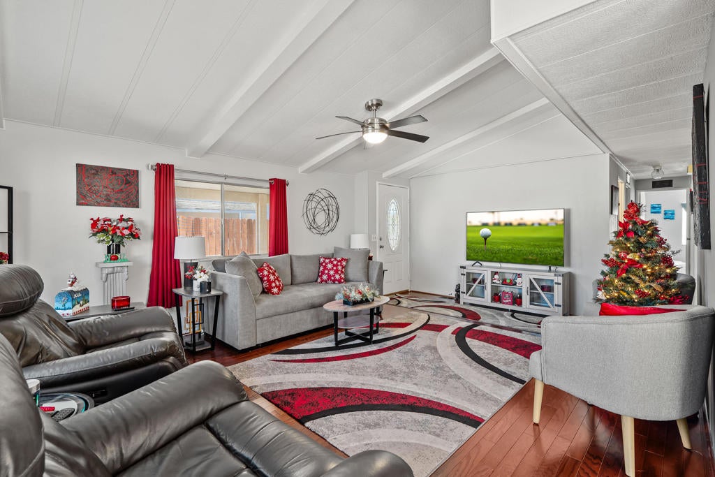 This beautifully, 'FULLY FURNISHED, TURNKEY, READY TO MOVE IN!' remodeled 2-bedroom, 1-bathroom home in a sought-after 55+ community offers comfort and style, with no detail overlooked. From the moment you walk in, you'll be impressed by the thoughtful updates and beautiful turnkey furnishings throughout.The spacious interior features an oversized laundry room, perfect for extra storage space, or with the potential to convert it into a second bathroom. The detached 2-car garage provides additional convenience and room for your vehicles.Step outside to the gracious patio, designed for ultimate relaxation and enjoyment. Whether you're spending a quiet evening alone, hosting friends, or having family gatherings, you'll love the inviting fire table, BBQ area, and outdoor furniture. It's the perfect space for unwinding or entertaining.Additional highlights include sun screens on all windows for added energy efficiency and privacy, Ring spotlight security camera, plus the home comes with a 433A certification. The community offers RV parking option for residents, two pools with hot tubs, clubhouse, sport court and lush areas to enjoy adding even more convenience to this fantastic location.This home is truly a gem--ready for you to move in and enjoy all that this vibrant community has to offer!