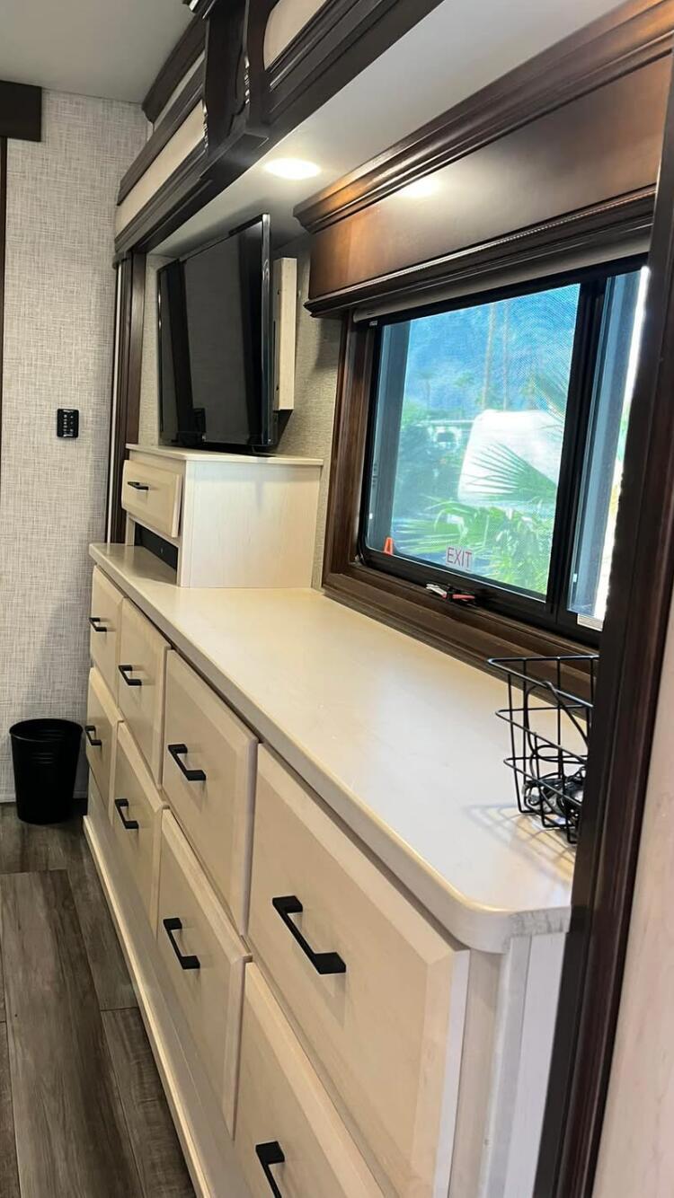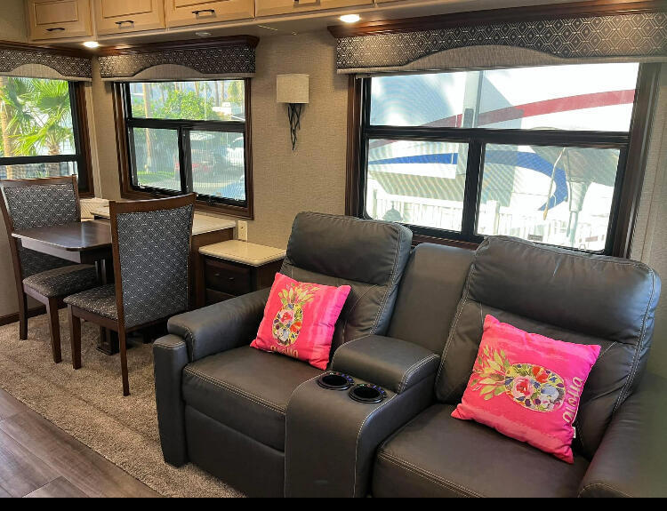 Lot 1206 - it's a gem! Imagine this: a gorgeous 2020 Mobile Suites golf cart, parked right on the back nine with amazing views of the mountains, a pond, and even a fountain! It's practically steps away from the clubhouse - think soaking up the sun by the pool, hitting up some Singo, or getting your pickleball game on. The RV itself (a 39DBRS3) is in fantastic shape and beautifully decorated. All the outdoor furniture you see in the pictures is included too! Let me know if you want more details.