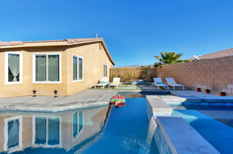Available for long-term lease, tastefully furnished, with the option to lease unfurnished if furnishings can be stored in the garage at no additional cost.This recently refreshed home is move-in ready and located in a quiet neighborhood on a cul-de-sac, offering both privacy and stunning mountain views.The inviting backyard sets the stage for outdoor living, complete with a sparkling pool, spa, built-in fire pit, and multiple patios perfect for relaxing or entertaining.Inside, the bright and open floor plan features 4 bedrooms, 2 bathrooms, soaring ceilings, and central A/C for year-round comfort. The seamless connection between living, dining, and outdoor areas makes the home feel spacious and welcoming.Practical highlights include an attached 2-car garage and gated RV parking with full hookups - a rare convenience.Ideally situated near I-10 freeway access, golf courses, shopping, dining, schools, parks, and local entertainment.