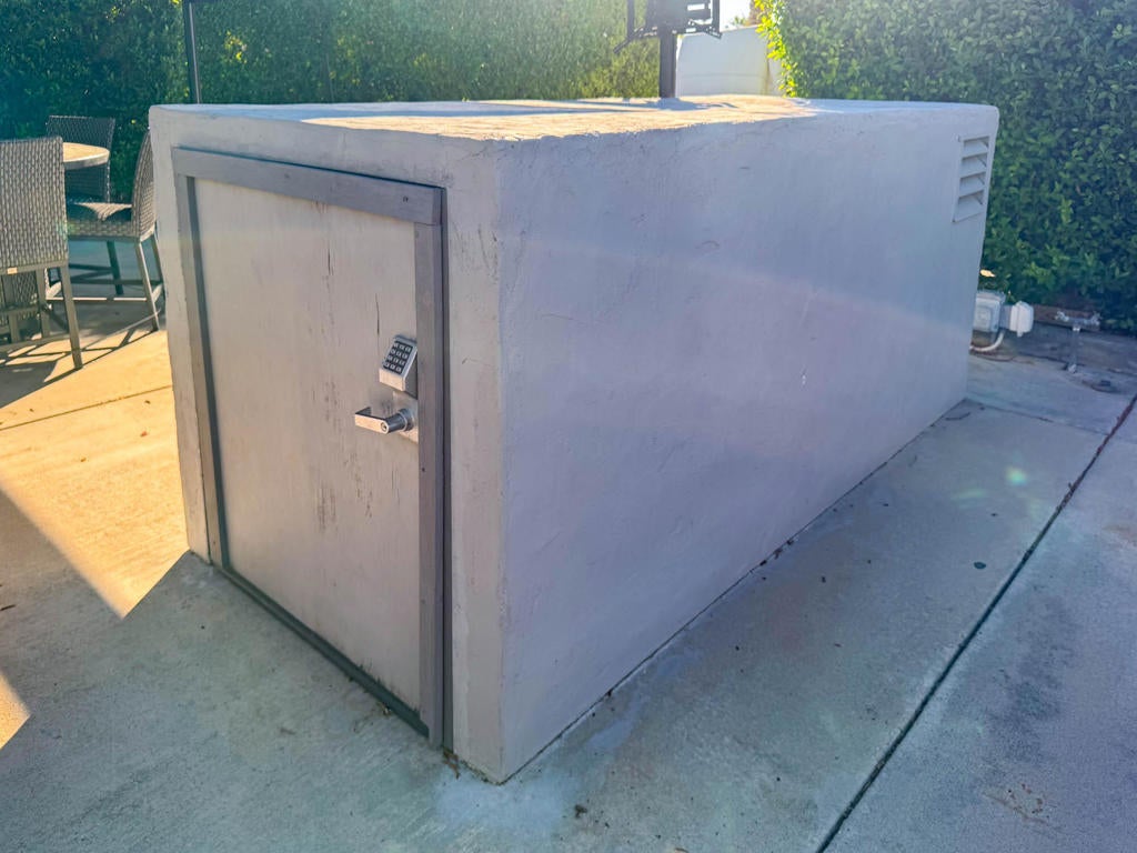 Tucked into a peaceful setting at Outdoor Resort Indio, Lot 158 offers the perfect balance of privacy, comfort, and resort-style living. Mature hedges frame the back and sides of the lot, creating a secluded outdoor retreat, while a small opening at the rear provides direct access to the Phase 2 golf course path and a glimpse of the fairway beyond.The heart of the lot is centered around a large sunshade with a ceiling fan and TV mount, ideal for relaxed afternoons or game-day gatherings. Evenings are enhanced with light posts, a fire table surrounded by six chairs, and the soothing sounds of two water fountains--one at the back corner and another near the front of the lot.A medium-sized outdoor kitchen with sink makes cooking easy, while a BIKE BUNKER storage unit with coded entry provides secure space for bicycles and gear, doubling as an added privacy buffer at the back of the lot. With tasteful landscaping and all the essentials for entertaining, Lot 158 is ready to elevate your Class A motorcoach lifestyle.Outdoor Resort Indio is a Class A only RV resort.