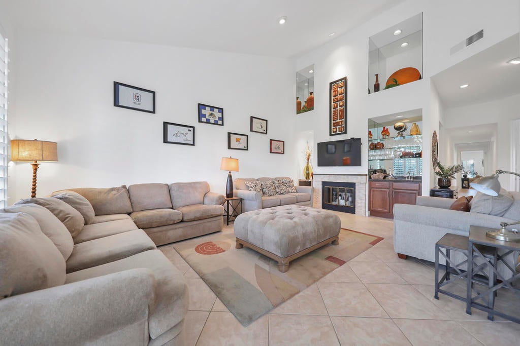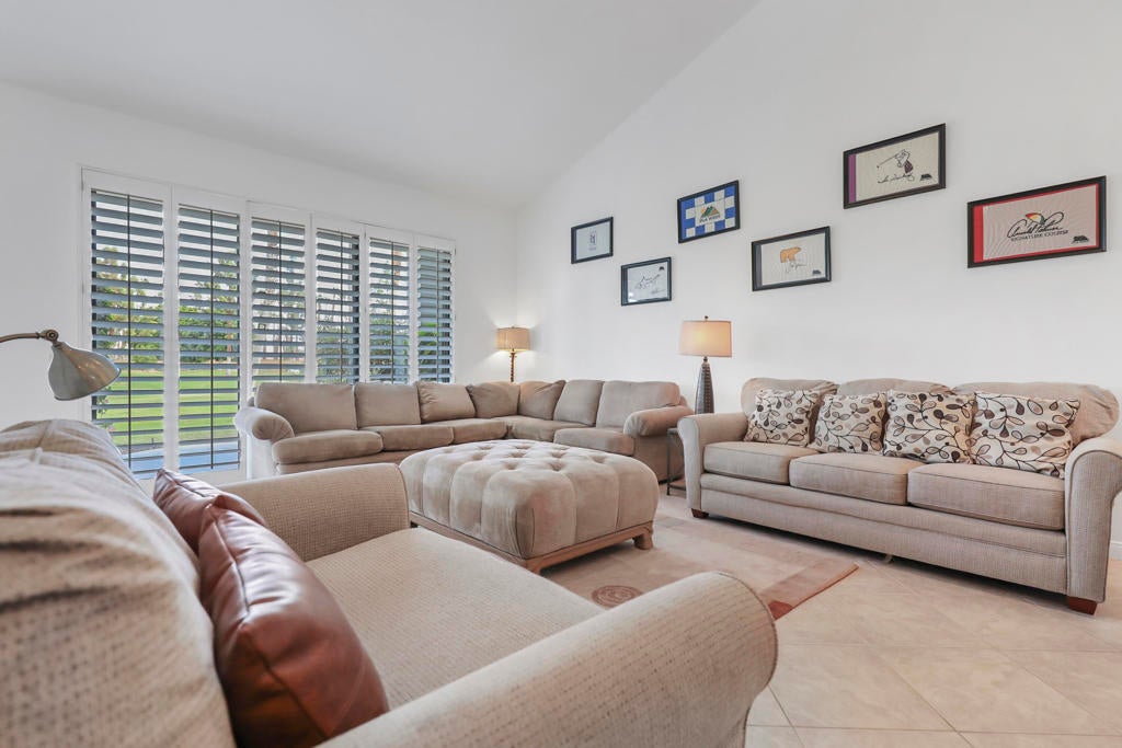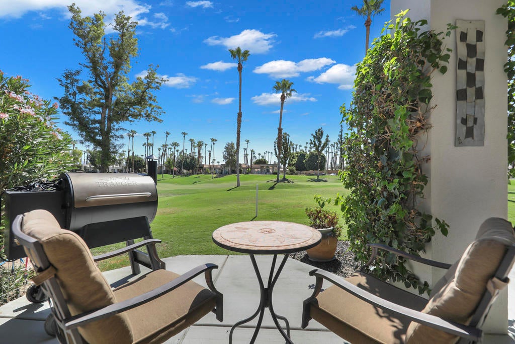 Welcome to this beautifully remodeled Champion III located on the 8th green of the prestigious Arnold Palmer Private Course at PGA West. With a serene mountain backdrop and stunning golf course views, this 3 bedroom, 2 bath condo offers the perfect blend of comfort, style, and desert elegance.Offered turnkey furnished, the home features thoughtful upgrades throughout. The kitchen has been completely renovated with sleek cabinetry, stainless steel appliances, quartz countertops, designer backsplash, and updated lighting. Vaulted ceilings and expansive windows fill the space with natural light, creating a warm and inviting atmosphere.The spacious primary suite includes a private courtyard retreat with a bistro set--ideal for morning coffee or evening relaxation. Both guest bedrooms feature brand new king-size beds, perfect for hosting family and friends. Additional upgrades include all new paint throughout, a brand new A/C (2025), new flooring, and a Pelican water softener system.Step outside to your private patio and take in the breathtaking views of the mountains and manicured fairways--perfect for entertaining or simply enjoying the peace and beauty of desert living.Ideally situated near world-class golf, tennis, pickleball, hiking, shopping, and dining, this is your chance to own a move-in ready getaway in the heart of PGA West.