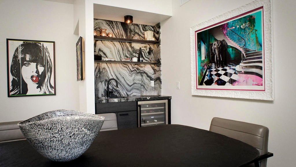 Beamed Ceilings, Built-in Features, Block Walls, Cathedral Ceiling(s), High Ceilings, Bar