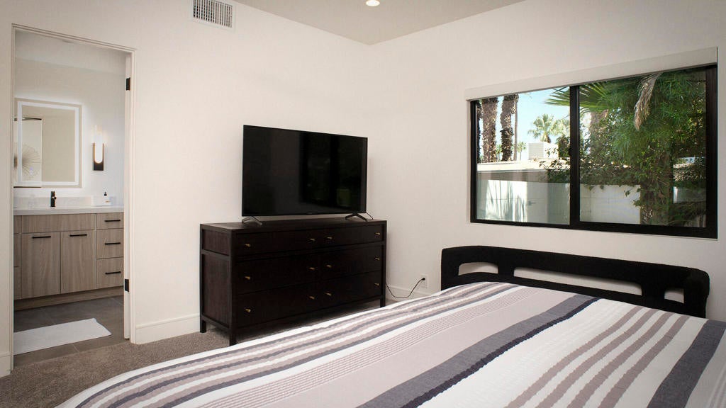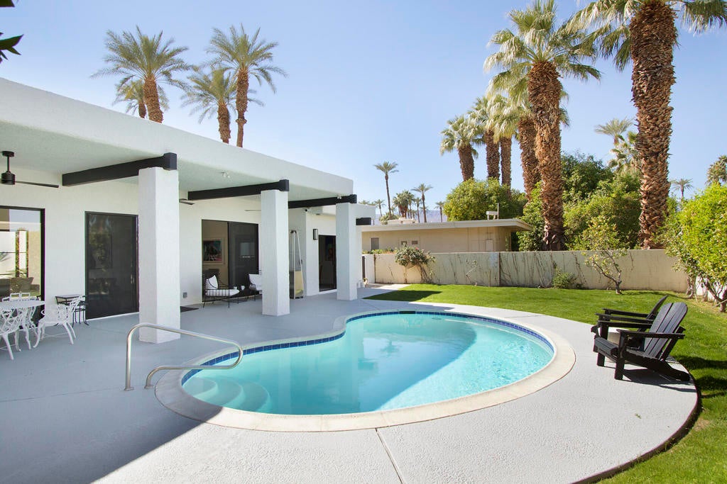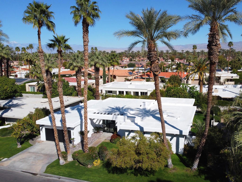 Modern remodeled masterpiece set on an oversized lot in Indian Wells on the prominent, south side, of Highway 111. New, custom glass doors flood light and command views of Eisenhower mountain into the fully, floor-up remodeled interior of this contemporary custom build.The entire property has been exquisitely re-worked, offering both function and sophistication. A modern, stylish new kitchen sets the palette with high-end appliances, new stone countertops and custom cabinets framed by new lighting and open shelving.A re-imagined granite-wrapped bar with integrated wine fridge compliment the large, open great room which is anchored by a custom, dramatic, focal fireplace.Light and bright, the 3 large glass sliding doors reveal the high volume painted ceiling beams, large artwork walls and open concept that allows the indoor/outdoor living that has become a desert hallmark.The expansive primary suite opens to a bonus, outdoor room/atrium space perfectly suited to an exercise space, art studio or separate 4th bedroom or casita.3 en suite baths, along with the main-space powder room, have been thoughtfully remodeled and/or added and expanded with providing warm luxury and comfort that echo the mid-century color and splendor that dots the neighborhood with eclectic architecture and style.A newly resurfaced salt-water pool shimmers in the private, lush rear yard where the palm shadows shade the numerous citrus trees. The roof has been thoughtfully remodeled with new foam and seal. New windows throughout. New electrical panel allows for ev install. As an Indian Wells resident you'll have access through the Indian Wells resident card that allows for preferred rates and discounts and the Indian Wells Resort.This opportunity, in a central, non-gated Indian Wells location, rarely comes with this level of sophistication and with this value!Take advantage of this opportunity.The work has been done for you, exceptionally!
