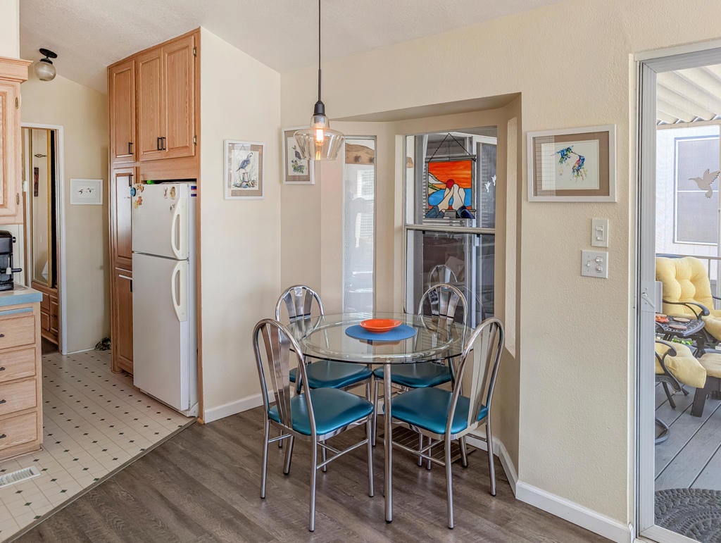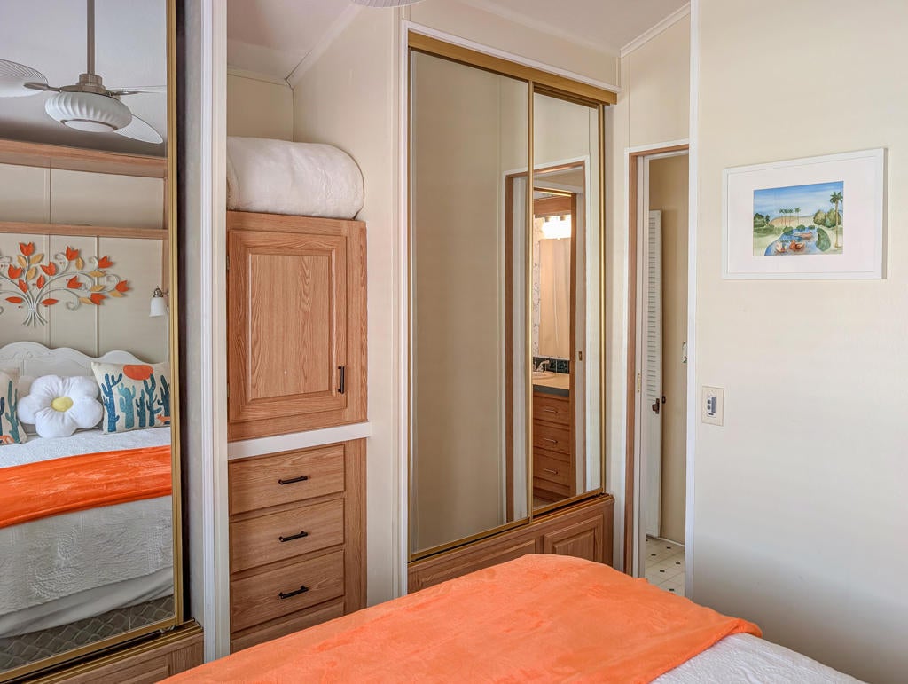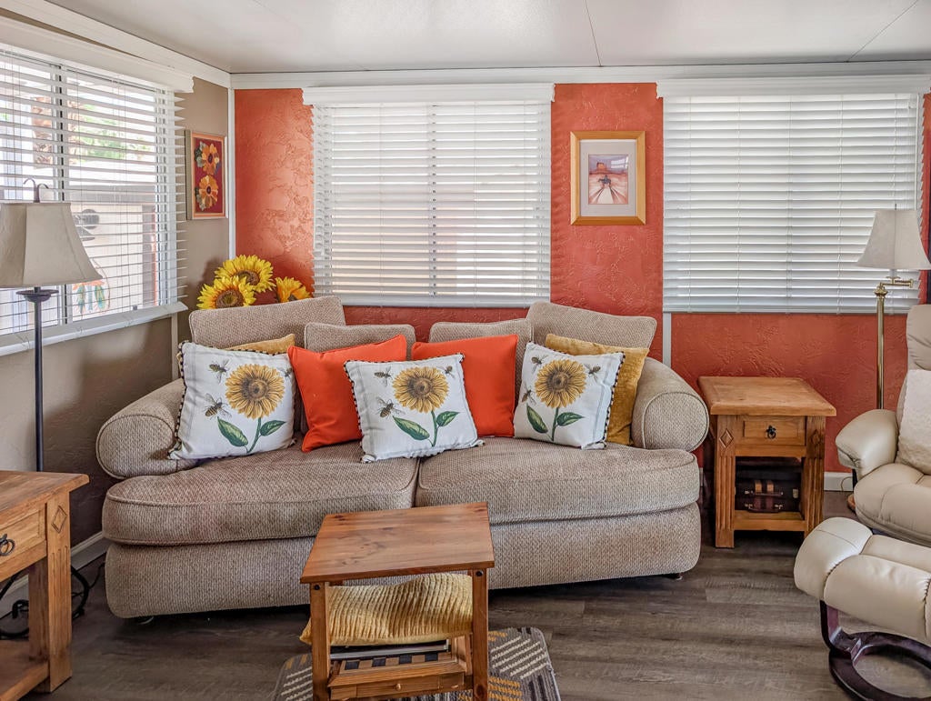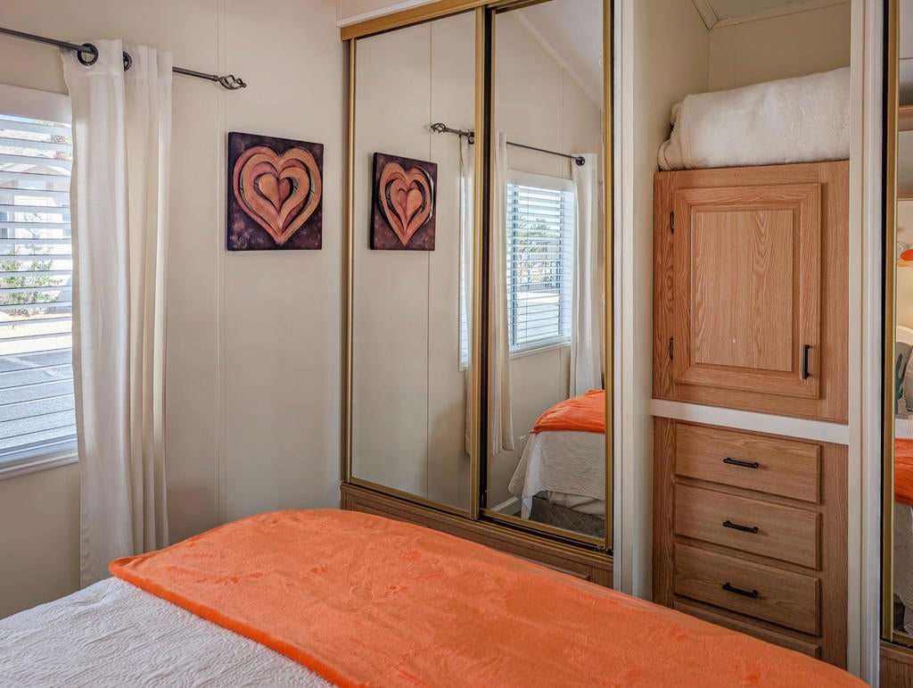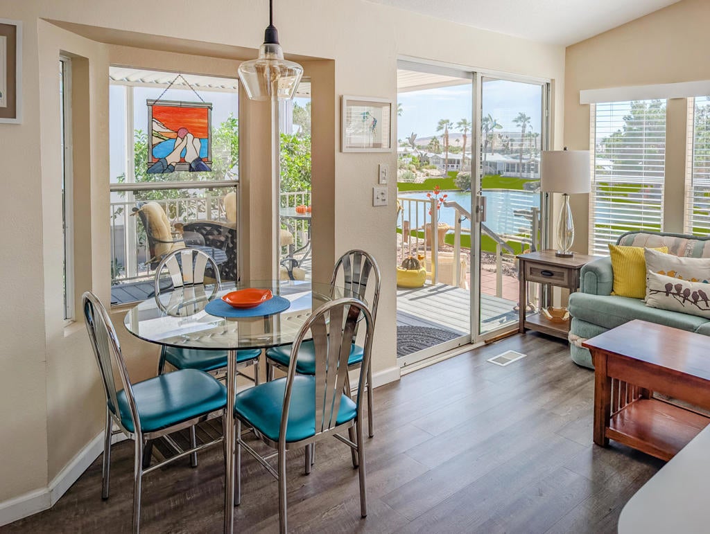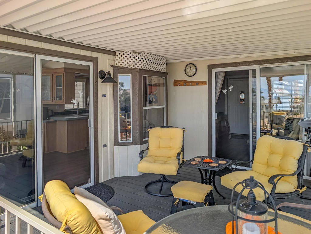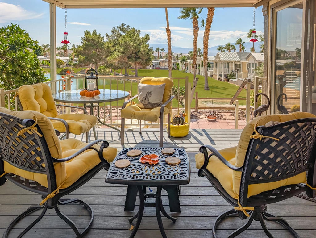Stunning Home with Exceptional Resort Amenities; This remarkable property offers unbeatable views and is surrounded by beautiful water features. Located on the 7th tee of the golf course, this impressive 1-bedroom, 1-bath home is a ~600 sq. ft. 1998 Fleetwood Park Model. From the moment you enter, you'll be captivated by the modern design, vibrant and well-appointed furnishings, and the stunning vistas. The home provides both privacy and a turnkey living experience, making it the ideal getaway or a permanent residence. Outdoor Living and Entertaining; Enjoy a spacious, wind-protected deck--perfect for entertaining guests or unwinding as you watch the sun set over the hills. This inviting space allows you to savor all the comforts of home while soaking in the scenic surroundings.Community and Resort Amenities;Caliente Springs is a premier 55+ resort community, renowned for its extensive amenities. Residents have access to a fabulous mineral-fed hot spring pool and spas, a 9-hole golf course, 12 pickleball courts, tennis courts, laundry facilities, and much more. The community is actively involved, fostering a close-knit environment where friends truly become family. Please note that the lot is not owned; space rent is $950 per month. Golf Cart included.
