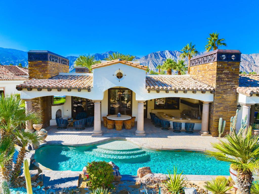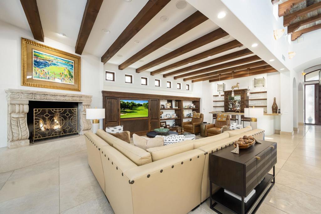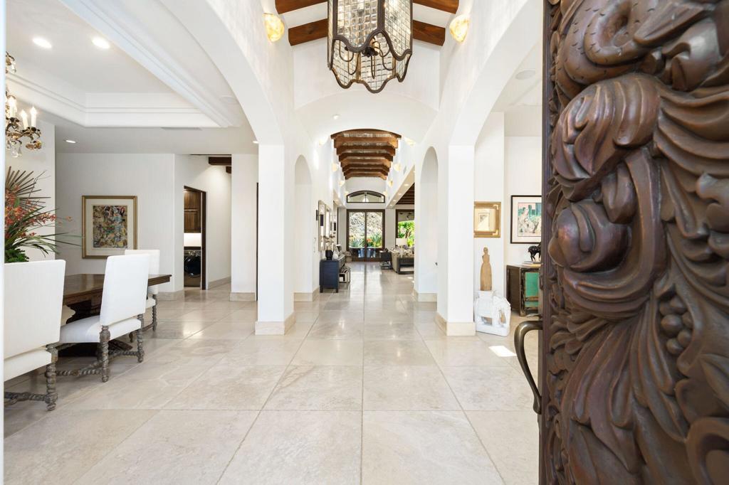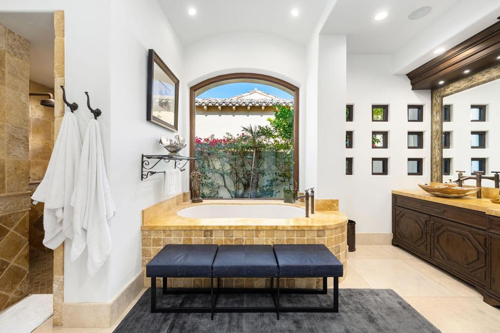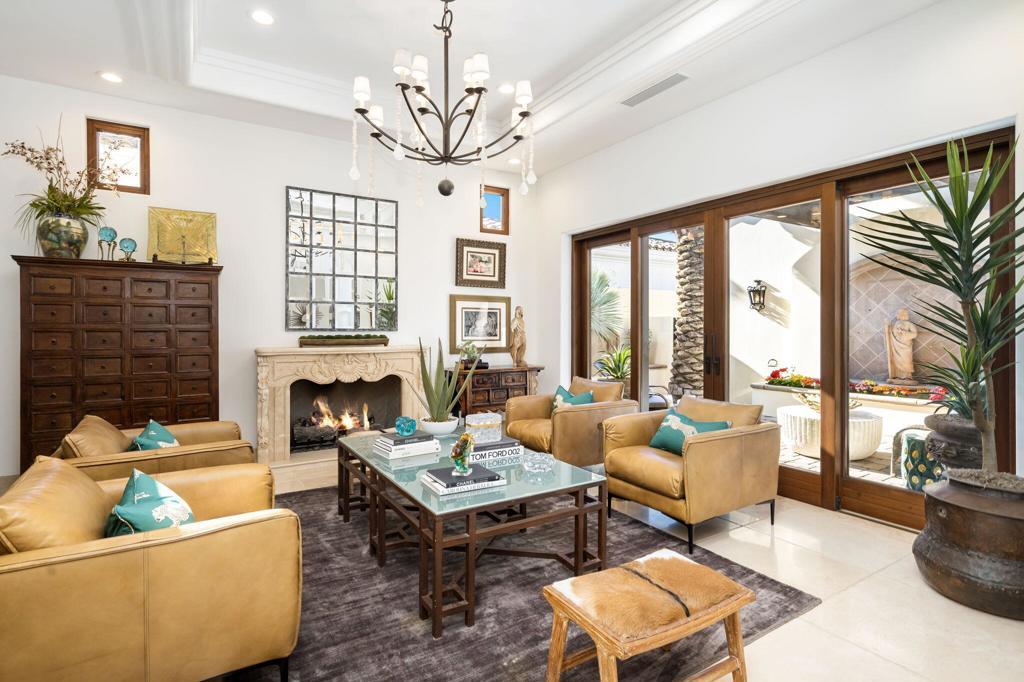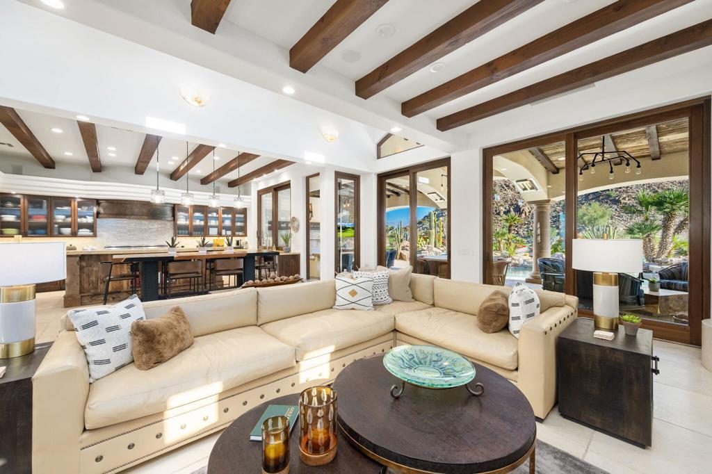 Newly remodeled and furnished by a top interior designer, this amenity rich home in quiet and private location has 4 bedrooms including casita with living room. This Jim McIntosh masterpiece is a study in fine detailing with Albertini windows & sliding doors, Italian marble floors, carved stone fireplaces, handsome beams & wood ceilings. Light and bright open floor plan with new paint and LED lighting, spacious living and family rooms, gorgeous dining room, restaurant style bar, & stunning wine room. Restaurateur's kitchen includes commercial grade refrigerator, 60-inch range, and beautiful slab & tile detailing. Elegant primary bedroom suite with reclaimed wood ceiling, fireplace, beautiful bathroom suite, and huge closet. Handsome office can be the 4th bedroom, and the spacious casita suite with kitchenette, living area & cozy bedroom. Built for outdoor living with huge, covered patio with outdoor kitchen / bar (with BBQ, frig, ice & dishwasher), multiple seating areas, fireplace, heaters & misters. Intimate setting with dramatic close mountains, and sparkling swimming pool, spa and nearby fire pit. Pool has new pebble tec, new equipment & LED lights. Recent upgrades include electric shades, several new AC units & thermostats, Lutron dimmer switches, new ice machines & subzero beverage center, several new TVs, new misting system, new hot water heater. Impeccably maintained by meticulous owners. Offered furnished per inventory except some personal items and one chandelier.