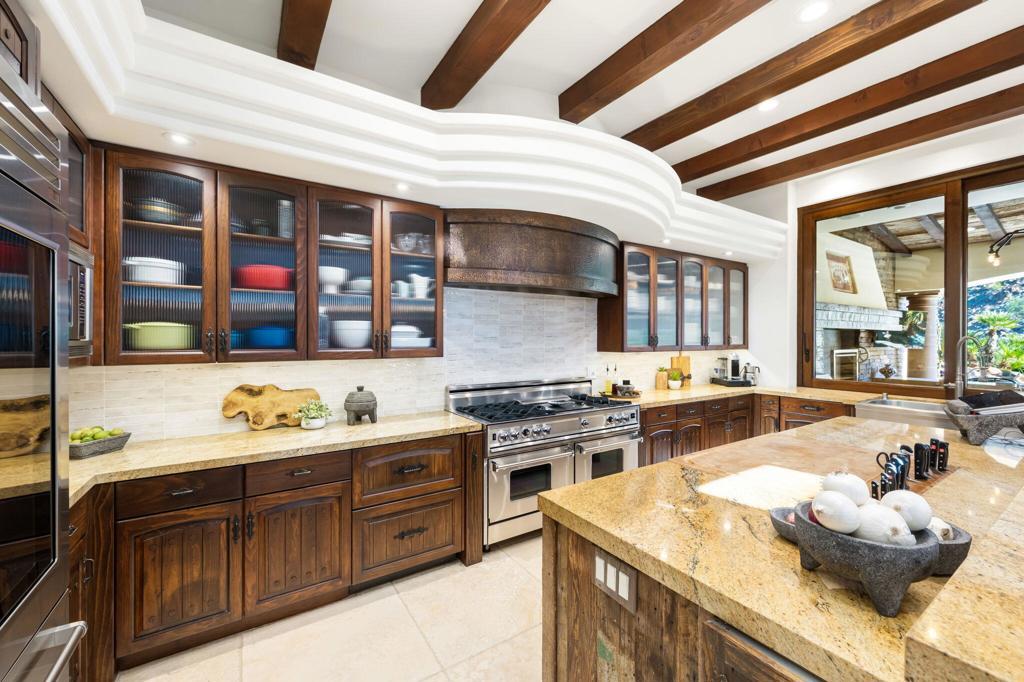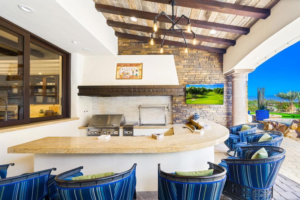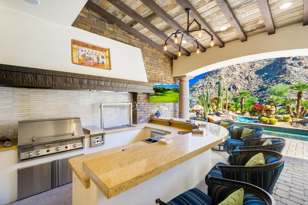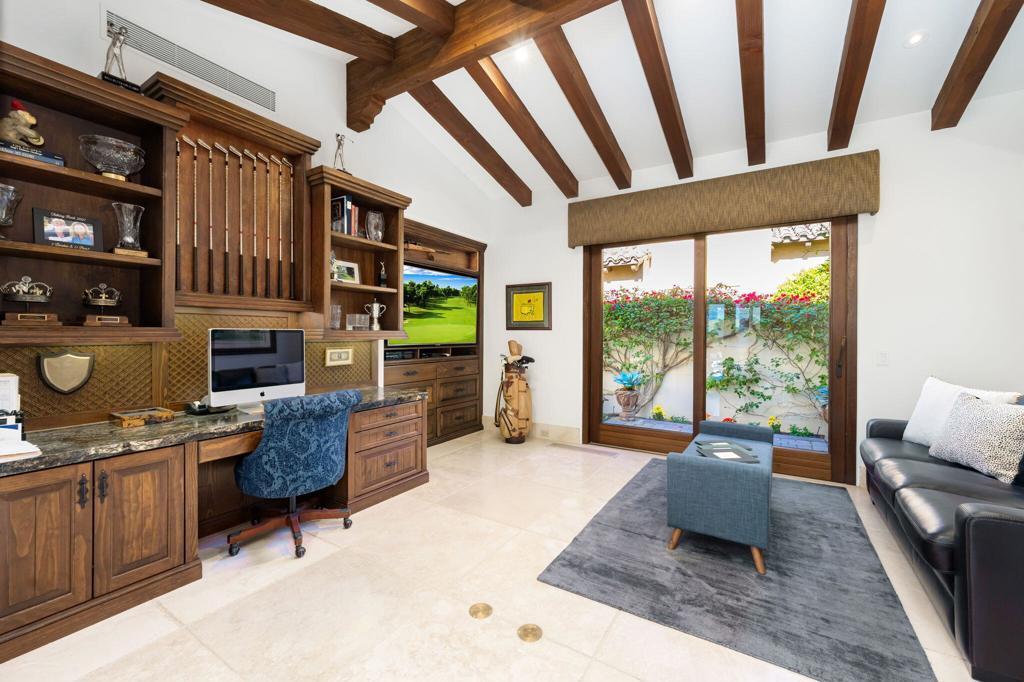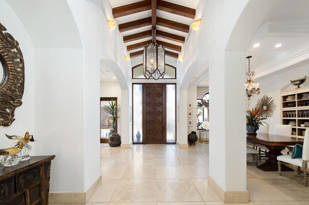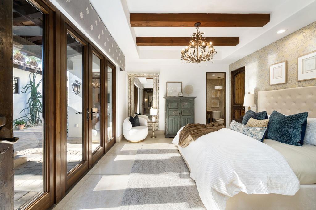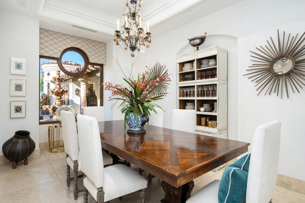 Newly remodeled and furnished by a top interior designer, this amenity rich home in quiet and private location has 4 bedrooms including casita with living room. This Jim McIntosh masterpiece is a study in fine detailing with Albertini windows & sliding doors, Italian marble floors, carved stone fireplaces, handsome beams & wood ceilings. Light and bright open floor plan with new paint and LED lighting, spacious living and family rooms, gorgeous dining room, restaurant style bar, & stunning wine room. Restaurateur's kitchen includes commercial grade refrigerator, 60-inch range, and beautiful slab & tile detailing. Elegant primary bedroom suite with reclaimed wood ceiling, fireplace, beautiful bathroom suite, and huge closet. Handsome office can be the 4th bedroom, and the spacious casita suite with kitchenette, living area & cozy bedroom. Built for outdoor living with huge, covered patio with outdoor kitchen / bar (with BBQ, frig, ice & dishwasher), multiple seating areas, fireplace, heaters & misters. Intimate setting with dramatic close mountains, and sparkling swimming pool, spa and nearby fire pit. Pool has new pebble tec, new equipment & LED lights. Recent upgrades include electric shades, several new AC units & thermostats, Lutron dimmer switches, new ice machines & subzero beverage center, several new TVs, new misting system, new hot water heater. Impeccably maintained by meticulous owners. Offered furnished per inventory except some personal items and one chandelier.
