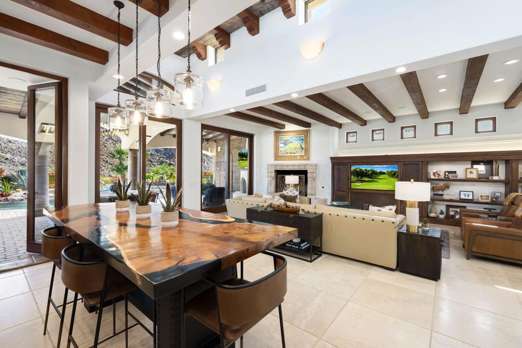 Beamed Ceilings, Wet Bar, Separate/Formal Dining Room, High Ceilings, Primary Suite