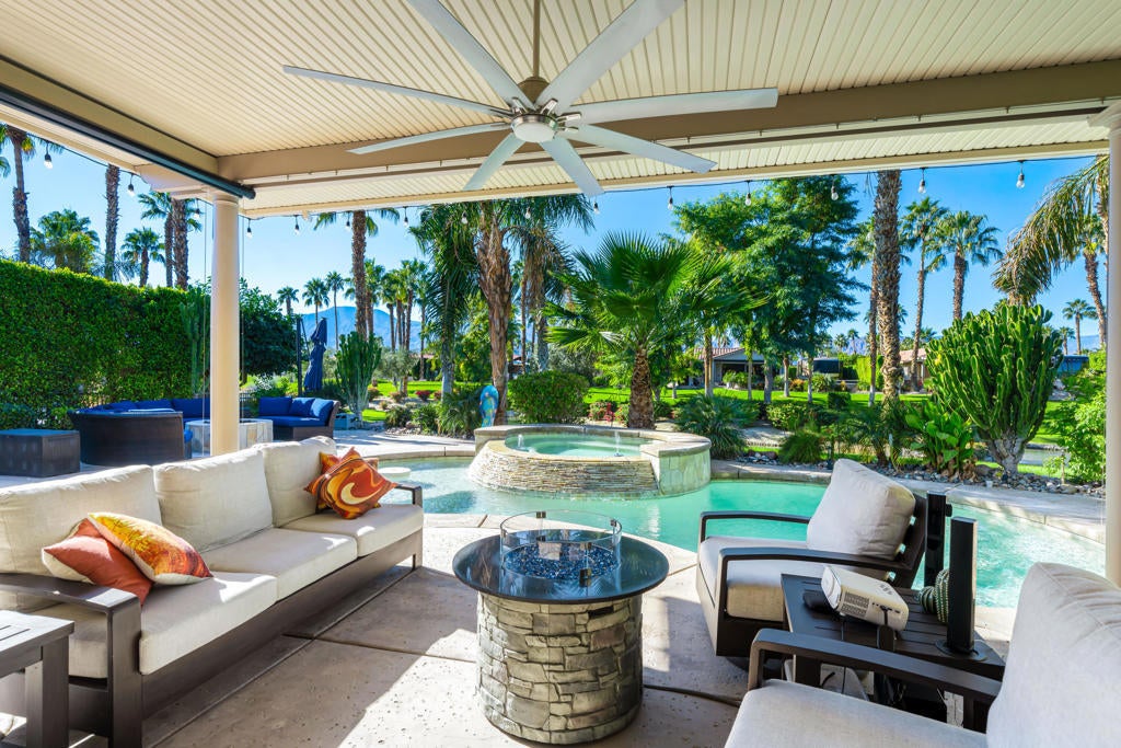 #78 DESERT SHORES RESORT Newer kitchen countertops, newer vinyl plank floors, new bathroom, baseboards, epoxy floor and split-system air in garage.Covered patio and pool, spa and firepit!Western Exposure Property situated on beautiful lake with Mountain Views. Pool & Spa! Association includes clubhouse, tennis, fitness , pickleball, community pool & spa, social activities, 24 hour, guard gated with high-tech perimeter security, trailer storage area, doggie park, front yard landscape maintenance & brand new super-speed FIOS internet