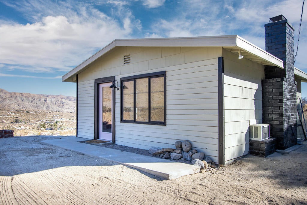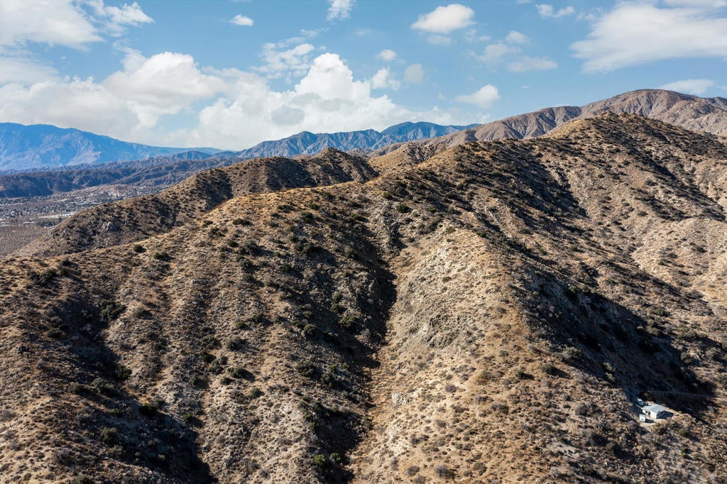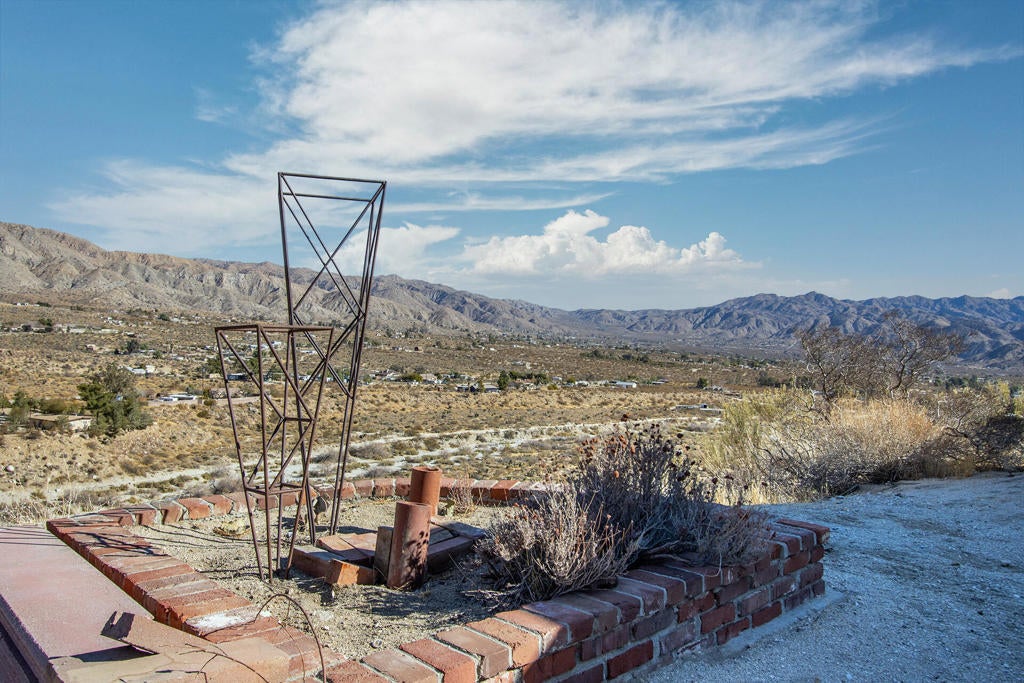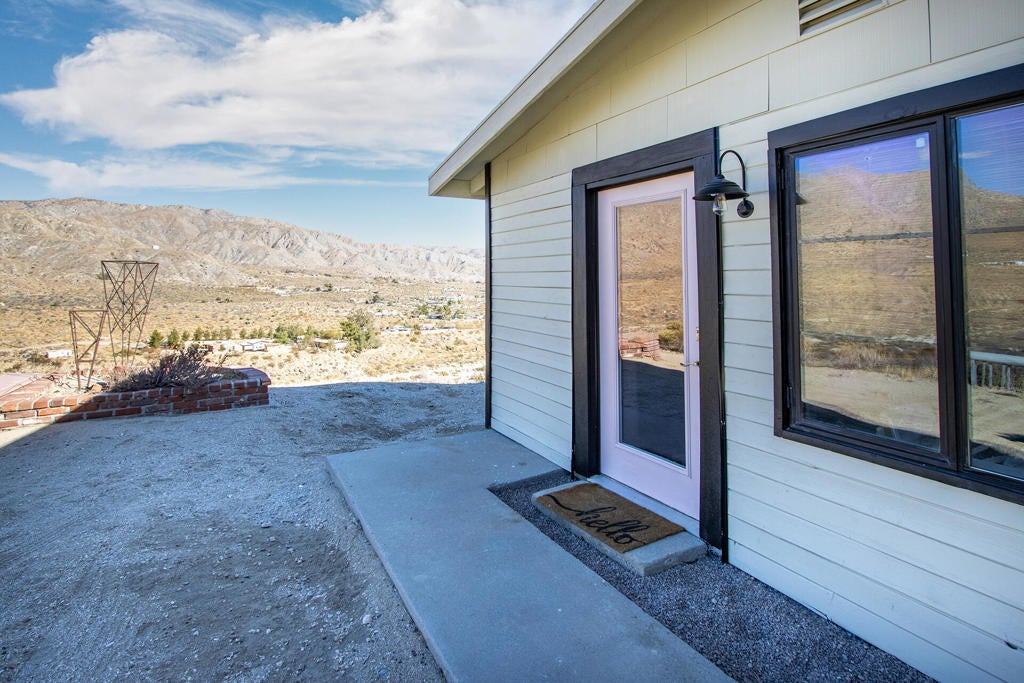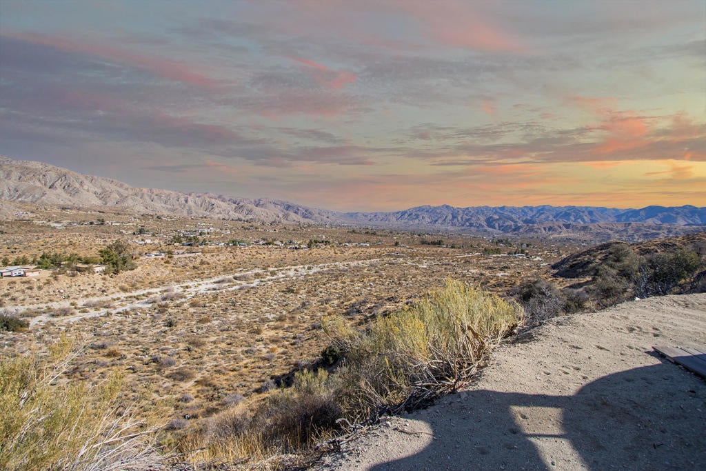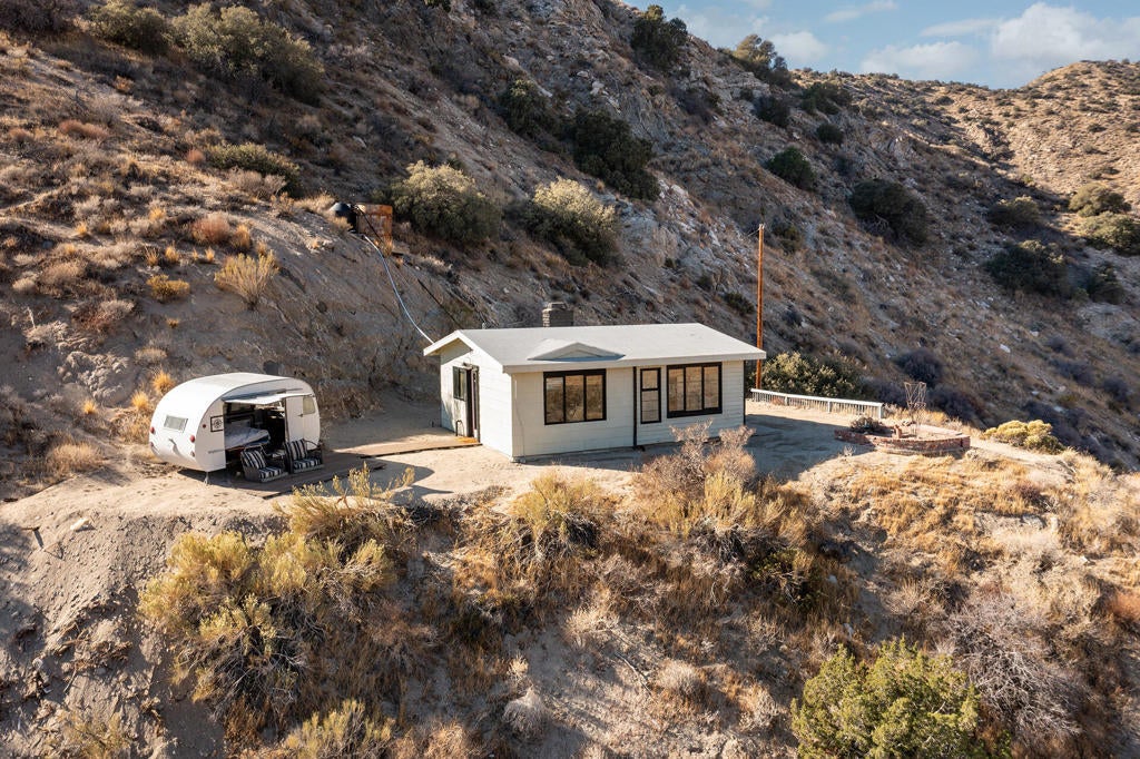 Owner Will Carry Financing! Dream cabin elevated on a hill in the clouds. Meticulously remodeled designer mid century home. Stunning natural panoramic views. 10 acres on two legal lots. Property backs up to government land that connects to the Sand to Snow Monument. Your own nature park with trails, valleys, ridges, and 360' views. Slab walkway leads to the entryway with a matte black barn light. Front door opens to the living room with a masonry fireplace, hearth ledge, gallery wall with picture light and large windows. Kitchen area with recessed lighting, butcher block island, and vintage kitchen. Bedroom nook with inspiring vistas, shelving, ceiling fan, and breakfast bar table. Bathroom with floating pedestal sink, mirror cupboards, large walk in tile shower. Step out on the hilltop patio high above the valley. Vintage remodeled 50's trailer guest unit with deck patio and sofa chair loungers. Queen bed with cabinets and amazing views. Natural desert fauna of yucca trees, creosote bushes, and cactus. 20 miles to Palm Springs. 115 miles to LA. 21 miles to Joshua Tree National Monument. 10 miles to Yucca Valley. The local Covington Park offers tennis courts, kids playgrounds, and community center. Restaurants and amenities nearby. May qualify for Conventional Lending. Don't wait, Call Now!
