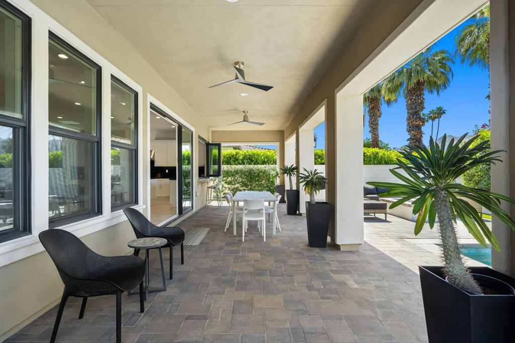 Motivated Seller! Welcome to The Province - Indian Wells' Newest Luxury Gated Community. Experience elevated desert living in this newly built contemporary masterpiece, located in the exclusive, gated enclave of The Province in Indian Wells. Designed with modern elegance and seamless indoor-outdoor integration, this residence offers refined finishes, cutting-edge technology, and an amazing entertaining resort style yard. This meticulously designed residence boasts an open-concept floor plan that seamlessly unites the expansive living room, elegant dining area, and state-of-the-art gourmet kitchen--perfect for both everyday living and effortless entertaining. The chef's kitchen is a culinary dream, featuring top-of-the-line stainless steel appliances, including a Sub-Zero refrigerator and a professional-grade Wolf 6-burner gas range with double ovens, sleek black quartz countertops offer a striking contrast to the white soft-close cabinetry. Soaring ceilings and beautifully tiled flooring flow throughout the home. Each of the three generously sized bedrooms offers its own private en-suite bathroom. Smart Home features include; control lighting, door locks, and security cameras seamlessly via an intuitive mobile app. Integrated security; Includes electric blinds and a hardwired Ring security system for enhanced safety and convenience. Energy efficiency; enjoy reduced utility costs with an owned solar power system and a modern tankless water heater. Dual-zoned HVAC systems allow for personalized climate control in different areas of the home. Resort-Inspired outdoor living; step into a private retreat featuring built in BBQ, a luxurious saltwater pool and spa with waterfall, surrounded by custom hardscape designed for both relaxation and entertaining. Enjoy sunbathing platforms, a cozy daybed area, and the convenience of a stylish outdoor bathroom. Prime Location & Resident Perks include; walk to The Nest, close proximity to the Indian Wells Shopping Center, and Indian Wells Golf Resort. Minutes from world-renowned resorts, spas, and El Paseo - the ''Rodeo Drive'' of the Desert. As an Indian Wells resident, enjoy exclusive privileges such as: discounted golf and dining at the Hyatt Resort, complimentary access to the Hyatt's state-of-the-art fitness center. This is Desert Living at Its Finest; live, entertain, and unwind in unmatched luxury and comfort! Schedule your private showing today and experience all that The Province has to offer.