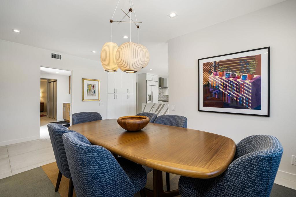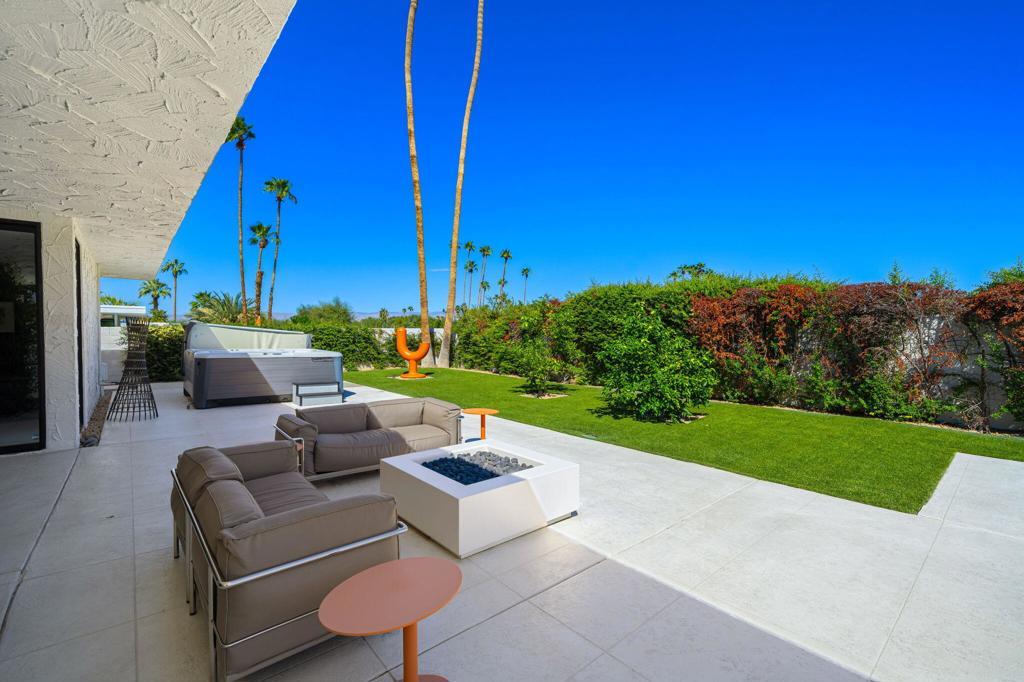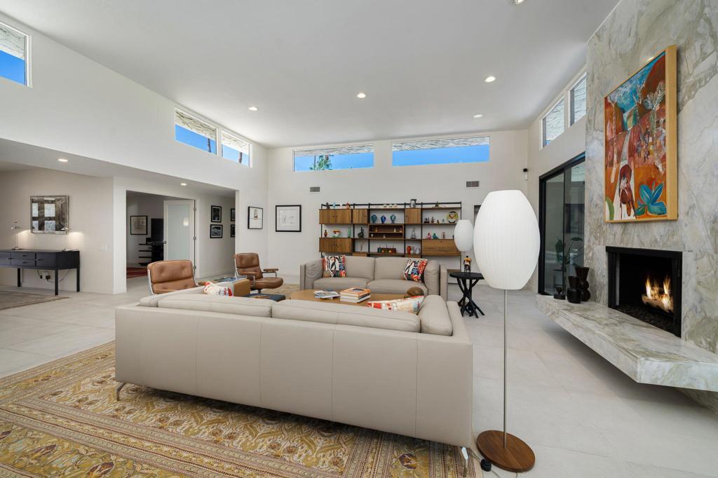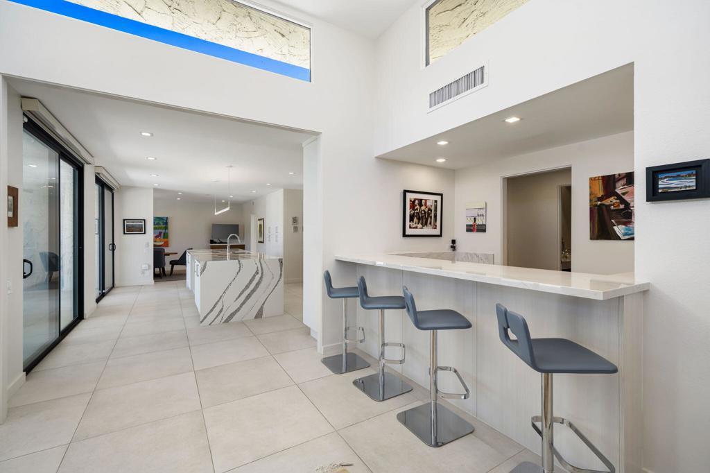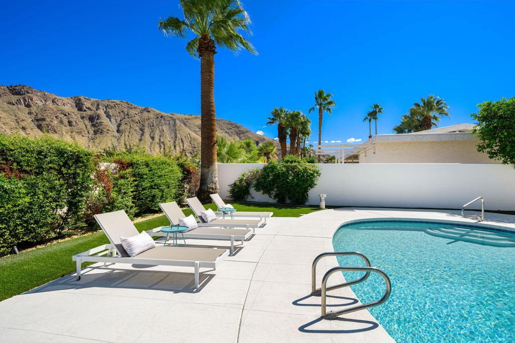 Great Views! Welcome to Canyon Estates, a distinguished community renowned for its mid-century architecture in South Palm Springs. This executive home, designed by acclaimed architect Charles DuBois, showcases exceptional mid-century modern design elements including high ceilings, clerestory windows, and expansive walls of glass that seamlessly integrate indoor and outdoor living spaces .The property offers panoramic mountain views, a pool, hot tub, and several leisure areas on an expansive, private lot. A gated entryway opens to an elegant floor plan comprising 3,137 square feet, remodeled with contemporary features and conveniences. Notable upgrades include new driveways and walkways, updated gates, and 23 owned solar panels with backup battery support. The roof was replaced in 2019. Additional highlights feature porcelain tile flooring, new sliding doors, double-pane windows, a comprehensive water filtration system, and a gourmet kitchen equipped with a Cambria Quartz island, G.E. Monogram Series appliances, and custom cabinetry. The spacious living room boasts a floor-to-ceiling custom fireplace and direct access to outdoor patios, ideal for entertaining. The primary suite offers stunning mountain vistas and includes a luxurious bathroom with a granite walk-in shower. The well-designed layout encompasses four bedrooms, three and a half bathrooms, a formal dining area, laundry area, and a two-car garage. This property is situated on fee land, providing added value. Select furnishings may be available under a separate agreement outside of escrow. Homeowners Association amenities include access to a nine-hole golf course, clubhouse, fitness center,tennis/pickleball courts,cable/internet, earthquake insurance, landscape maintenance and more! Call for your private showing today!