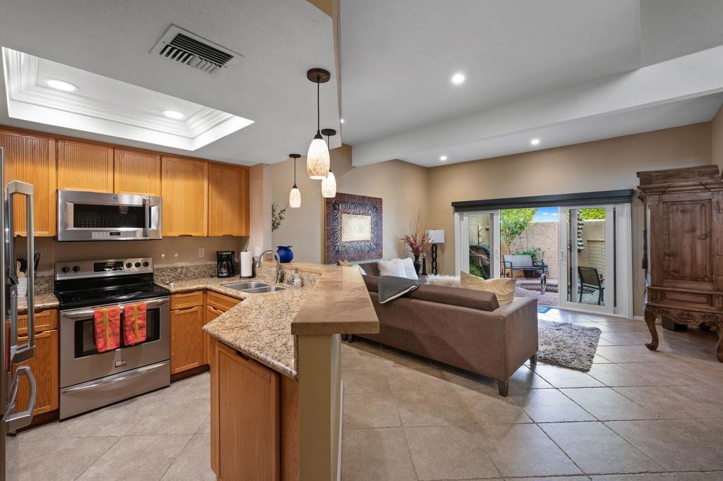Available now! This beautifully furnished 2-bedroom, 3-bath condo with a loft/den in the desirable South Palm Desert community of Ironwood is ready for move-in! This two-story home features vaulted ceilings, an open-concept layout, an upgraded kitchen, and an abundance of natural light throughout. On the first floor, you'll find the living room, dining area, kitchen, a full bathroom, and a private front patio with your own jacuzzi--ideal for relaxing under the desert sky. Upstairs, the loft offers a versatile space that can be used as a home office, gym, or flex area, complete with its own private patio and breathtaking mountain views. Both bedrooms are dual primary suites, each with a private balcony, ample closet space, and spacious, updated bathrooms--combining comfort with luxury. Community amenities include multiple pools, tennis courts, pickleball courts, a fitness center, clubhouse, and more. Located near world-class golf, shopping, dining, museums, top-rated schools, and The Living Desert Zoo & Gardens, this home is a true desert gem. Furnished and available now--don't miss out!
