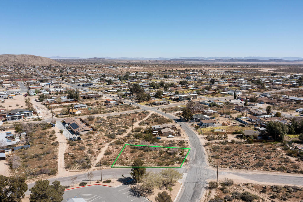 Large 9189sf lot in the trendiest section of the JT Village. Plans expired per Seller, but was previously permitted for a new home. South of the 62 in the Circle Streets. Just 2-3 blocks to the bars, cafes, restaurants, boutiques and the farmers market. Corner lot. New designer homes are popping up. Great views of boulder studded hills. Vistas of snow capped peaks on Mt San Gorgono. Go with a two story home to enhance the visual ambiance of the Little San Bernardino Mtns, Mt Bartlette, and Copper Mtn. In the last few years the JT Village has transformed into a hotspot of cutting edge architecture and the mid century revival. More celebrities, artists, and musicians are now calling the Village home than ever before. Less than a mile to the Sportsman's Park for tennis, basketball, a splash park, baseball, and skate park. Less than 5 miles to the Joshua Tree National Monument where about 3 million tourists visit annually. Amazing vacation area. Just 40 miles to Palm Springs. 68 miles to Big Bear. High priced homes in the area. Ideal for a modern contemporary home. Paved roads and utilities appear to be right in the street. Enjoy the lazy desert lifestyle just a few hours from Los Angeles. Buyers must contact the county planners for all questions on building permit status and usage. Buyers must verify all utilities. (APN) 0603-121-22-0000 Street address is real. Don't Wait! - Call Now!