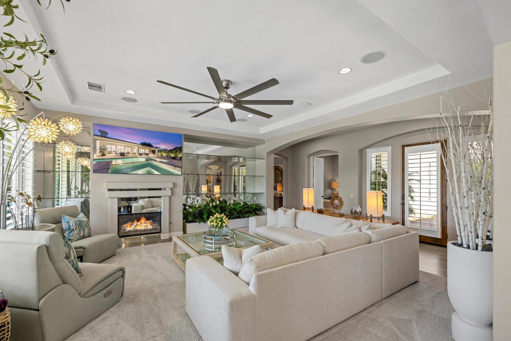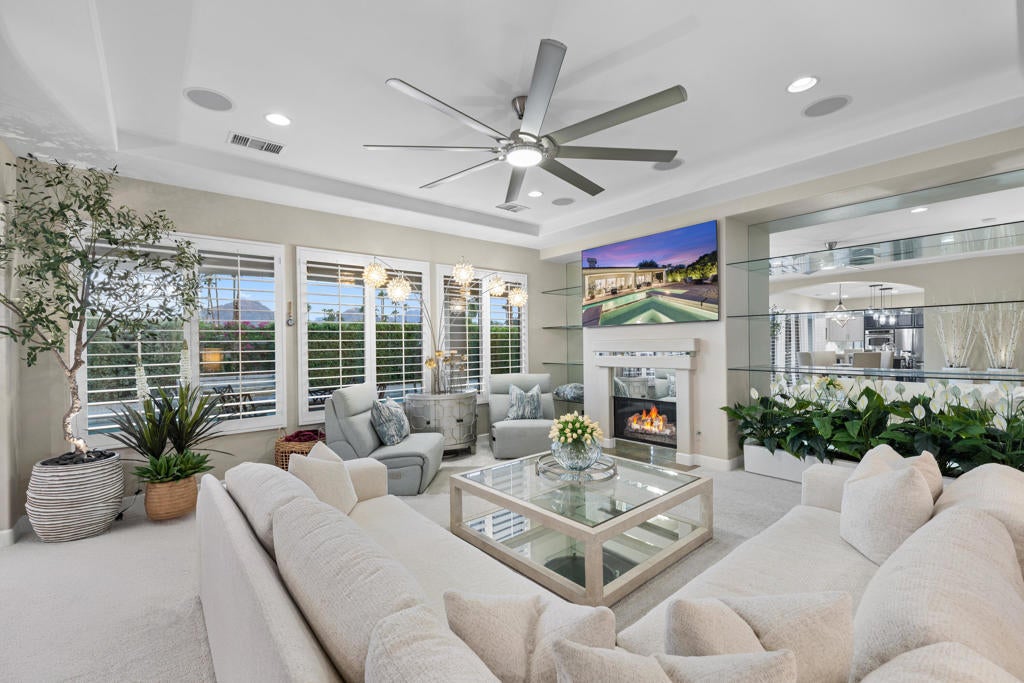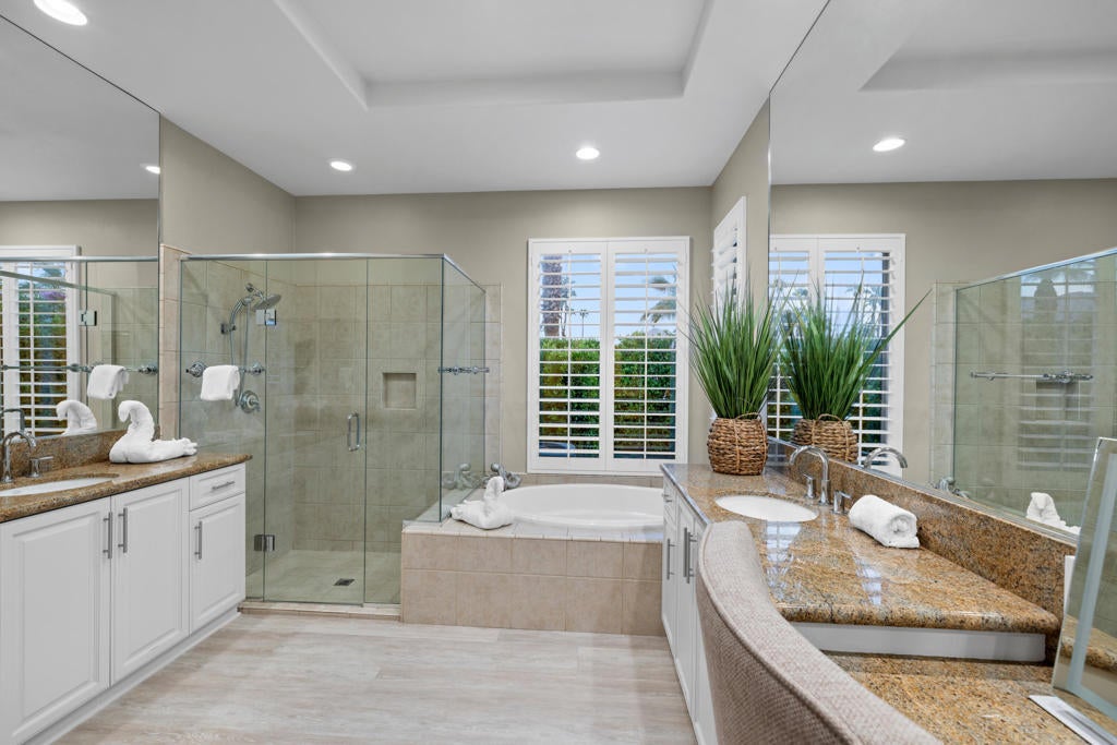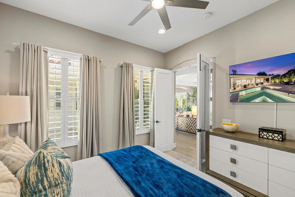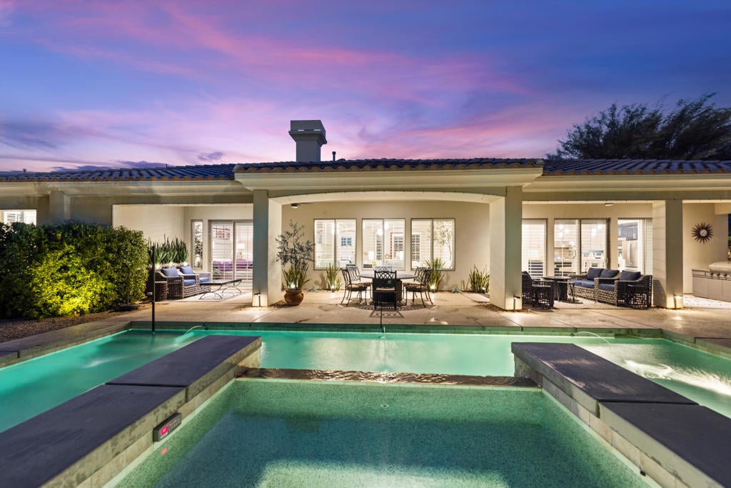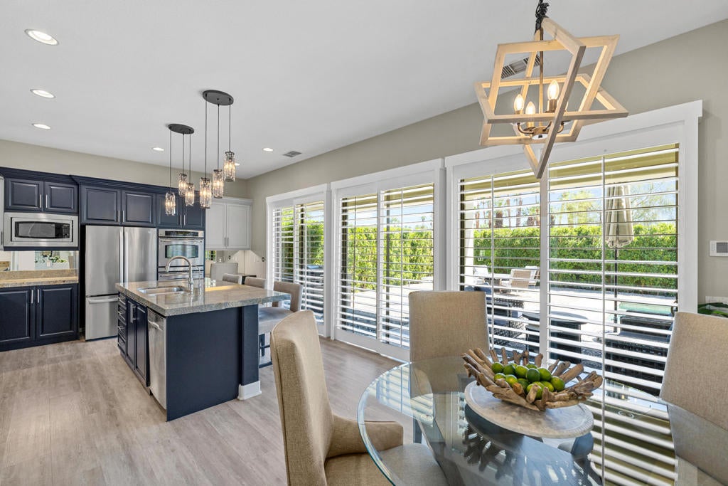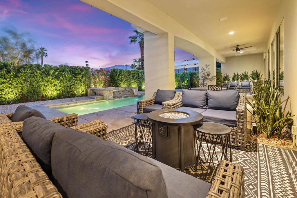 This beautiful 5 bdrm 3.5 bath home is located in the coveted gated community of Hidden Canyon. Nestled beneath the jagged Santa Rosa mountains with close proximity to the legendary La Quinta Resort, this newly renovated turnkey - furnished home is waiting for your arrival! Upon entering you will be greeted by an inviting living area bathed in natural light creating a warm and welcoming atmosphere. The open floor plan connects the living, dinning and kitchen area making entertaining a breeze. The tasteful kitchen is equipped with modern appliances, ample cabinetry and a butlers pantry complete with a breakfast bar where you can enjoy your morning reflections. A formal dinning area also seats 8 comfortably. The master bedroom is a tranquil retreat featuring a spacious layout, a walk in closet and ensuite bathroom with a luxurious soaking tub and separate shower. All 4 bdrms have King sized beds, two with their own ensuites and the other share a jack and Jill bathroom. Step outside to your private patio where you can relax and unwind in various seating areas around the salt water pool and spa. Located in the heart of La Quinta you'll have access to world class golf, tennis, upscale shopping, fine dinning. Don't miss this opportunity to experience the ultimate desert lifestyle in luxurious comfort!
