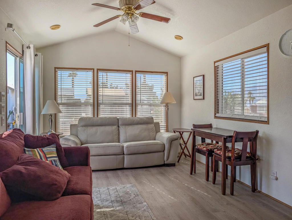 Motivated Seller! Bright and Cheery! Come find your vacation getaway or perhaps the Caliente rental program here in the sun with this immaculate, efficient, and well maintained 2005 Cavco Park Model ~400 sq. ft. 1 bedroom, 1 bath which has central heating/air conditioning and volume ceilings. This is a very well-appointed home ready to bring your clothes and enjoy the peaceful serenity of this magnificent park. This jewel is in the luxurious Caliente Springs 55+ Resort and offers top notch amenities to soothe your every desire including mineral hot spring fed pool and spas, fitness center, 9-hole golf course, 8-pickleball courts, tennis courts, full laundry facilities, library, chapel services all in a fun and very active community. Bring offers, make new friends, and call this home. Lot is not owned; space rent is $673. Easy lender finance (OAC).