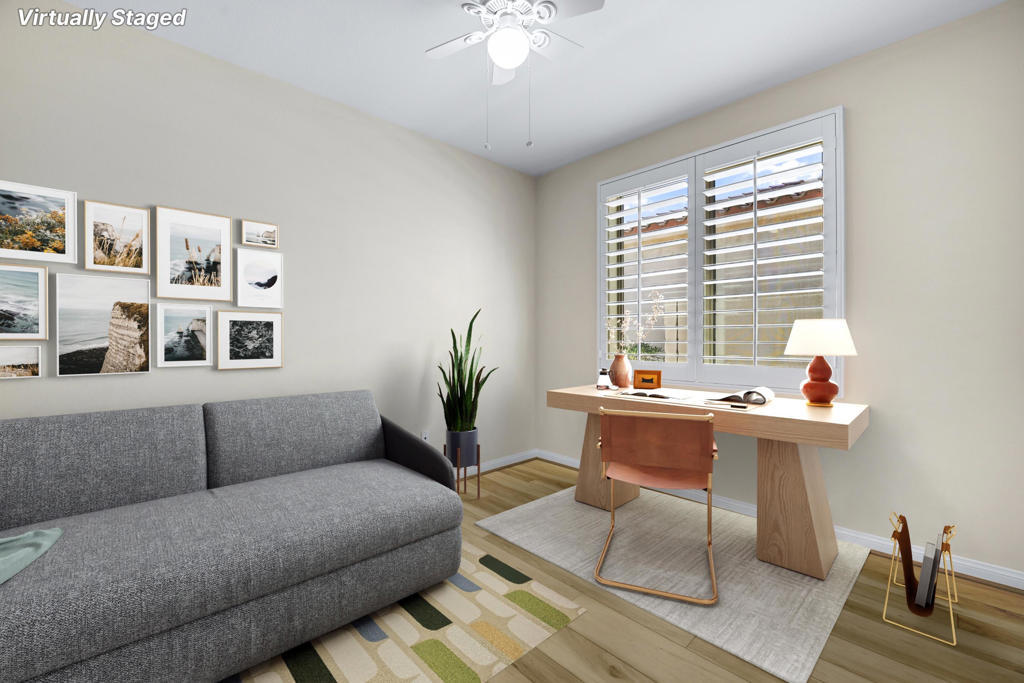 This gently lived-in San Vicente model radiates warmth and comfort, with a light, bright, neutral color palette that complements any decor style. Situated on a private, north-facing corner lot, the home features 2 bedrooms, a versatile den with double doors, and 2 bathrooms. The open floorplan creates seamless flow, and the den offers many options--office, hobby room, or guest space. To showcase its potential, the home has been virtually staged to inspire possibilities. Flooring is a mix of tile and luxury vinyl plank for easy care and style. The kitchen includes GE Profile dual convection ovens, slab granite counters, a 5-burner gas cooktop, and a microwave. A dining nook and breakfast bar add flexible dining spaces. The great room shines with recessed accent lighting, plantation shutters, and ceiling fans. The primary suite has sliding doors to the backyard retreat, dual vanities, and a walk-in closet. The guest bedroom, with mirrored wardrobe doors, sits next to a bath with tub/shower. A laundry room with deep sink and storage connects to the garage. Outdoors, enjoy a wrap-around covered patio with firepit, artificial turf, and elegant landscape lighting--perfect for desert evenings. Beyond your walls, Sun City Shadow Hills delivers resort-style living with two clubhouses, arts & crafts studios, fitness centers, indoor walking tracks, library, bistros, and game rooms. Residents enjoy two golf courses plus a lighted 18-hole putting course, indoor and outdoor pools & spas, and courts for tennis, pickleball, bocce, and shuffleboard. With more than 50 clubs, year-round activities, and 24/7 guard-gated security, this community offers connection, recreation, and peace of mind. Ideally located, Sun City Shadow Hills is just minutes from world-class dining, shopping, golf, and entertainment throughout the Coachella Valley. HOA dues include Internet. This isn't just a home--it's your gateway to an engaged and carefree desert lifestyle.