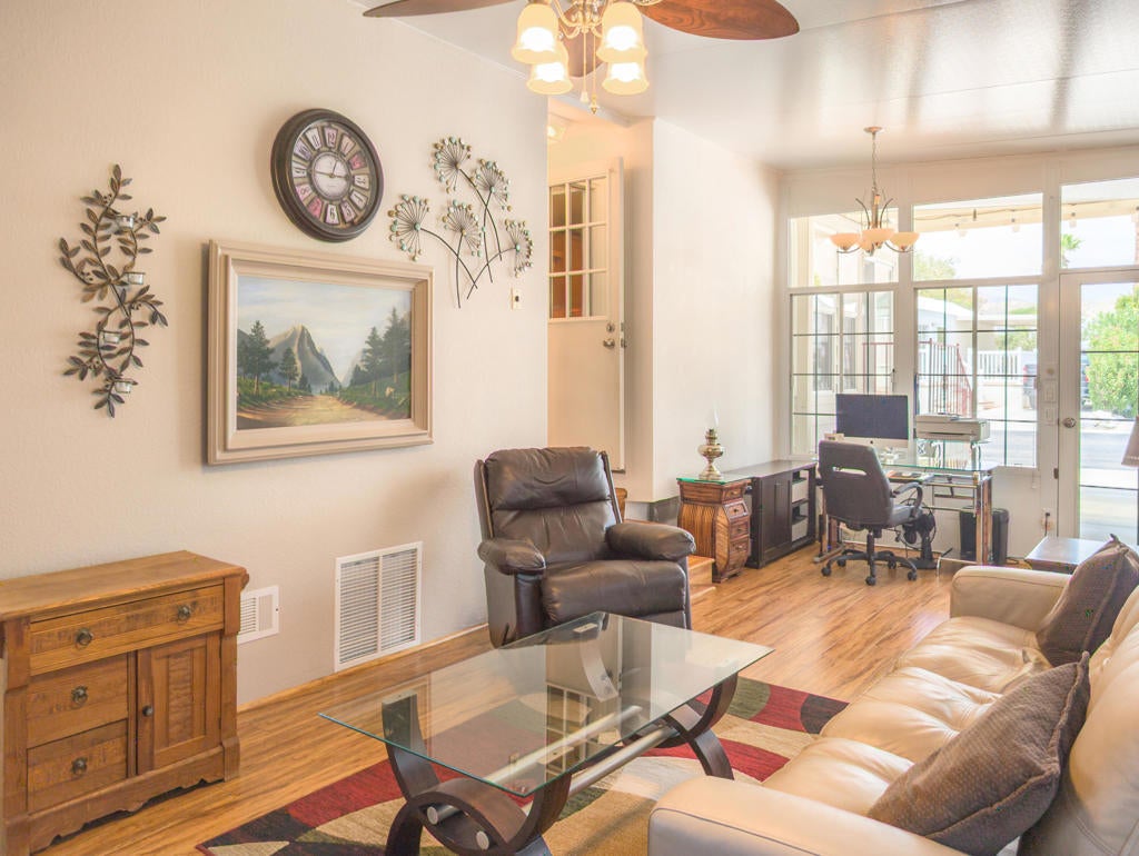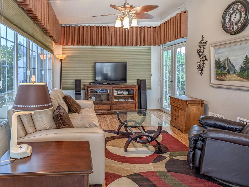 Stunning Views of mountains with pride of ownership and beautiful finishes throughout this spectacular 2006 Laurel Creek Park Model home. Here we have ~600 sq. ft. of living space and features including 1 bedroom, 1 bath, a renovated kitchen and bathroom with granite countertops and real solid wood cabinets, self-closing doors and drawers, under cabinet lighting, newer refrigerator, convection stove, sinks, faucets, water heater, 4-ton ductless system, a ducted evaporative cooler, and so much more. Come find your forever home or getaway vacation spot to Caliente Springs 55+ RV Resort where dreams come true under blue skies and sun. Enrich yourself in the amenities; mineral hot spring fed pool and spas, 8-pickleball courts, tennis courts, 9-hole golf course, planned water activities and a fun active community. Lot is not owned; space rent is $707. Easy lender finance (OAC).