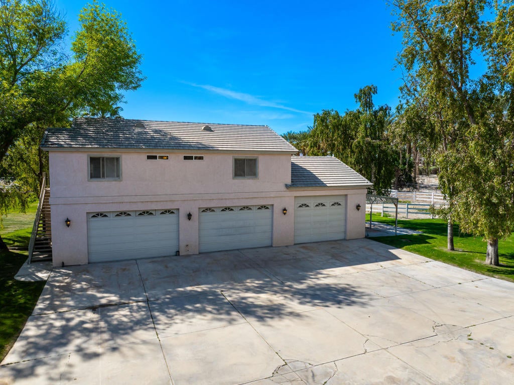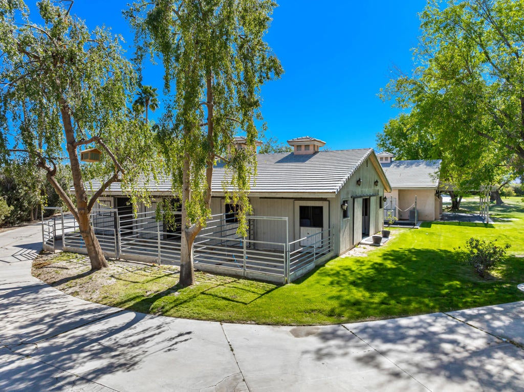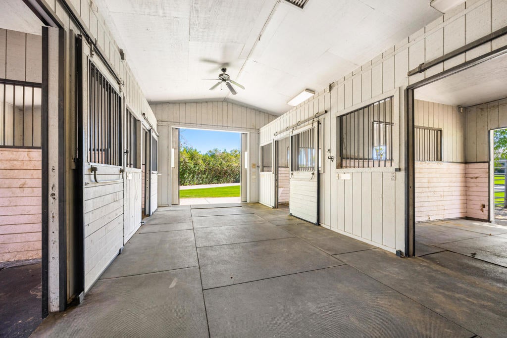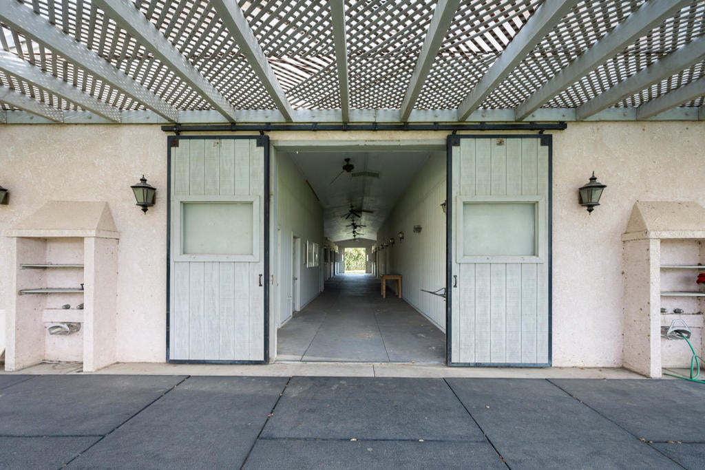 Beautiful equestrian compound! Great for horses, grand event or even your own personal estate. This approx. 9,131 SF home is located on 9.29 Acres. Enter through private electric gates and proceed up a meandering driveway past a large man-made lake with a beautiful waterfall to the main house. Step into the large foyer into an impressive living room with an oversized fireplace. The family room has a large bar and custom built-ins. Spacious kitchen with a large center island. The primary suite has dual walk-in closets (one with a large storage room attached), a powder/sitting room and an extra dressing room. The second primary suite has a living room, large walk-in closet and a full private bathroom. Each of the three guest suites have private full bathrooms. The main house has a large laundry room, wine cellar, cedar lined storage closet and a full dog kennel with a large built-in dog bath and fenced dog yard. There are four large garages with three very large storage rooms and a 5 gallon bottled water storage room. The guest house has three separate living quarters (studio and two 2 bedroom apartments) and two additional garages, one being a large RV garage. Additional property features include a huge covered patio, pool & spa, gazebo, two barns (one with caretakers quarters) with approx. 14 stalls, tack room with private full bathroom and a kitchen, multiple riding arenas, a large horse arena, pastures, an orchard and over 6 acres of turf. Many sitting areas with built-in benches throughout the property. There is a gym is with a full size multifunctional gym system, multiple closets and a large storage room attached. The orchard has its own well and is connected to the city as well. The possibilities are endless with this exceptional property. Total privacy abounds, yet you are only 2-4 miles from dining, shopping and schools.