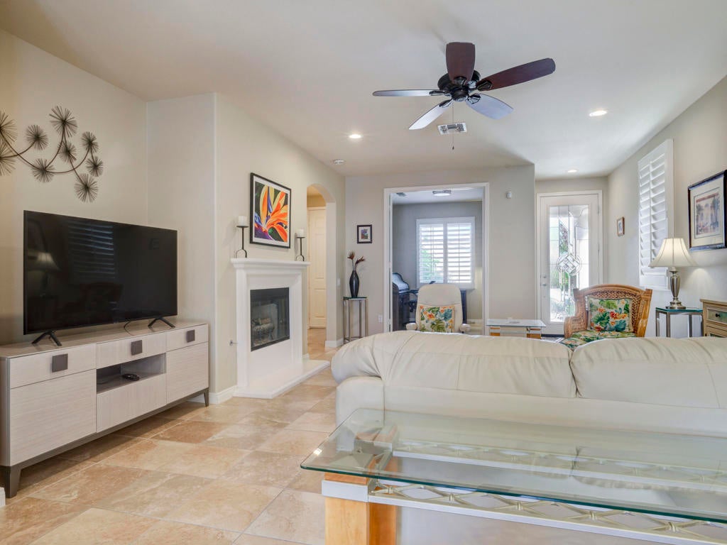 Now available for an annual lease! This beautifully maintained and fully furnished home in Sun City Shadow Hills offers comfort, style, and convenience in a vibrant 55+ community. This popular 2 bedroom, 2 bathroom, plus a den, San Ysidro floor plan features a light-filled, open layout that's perfect for everyday living or hosting guests. The remodeled kitchen includes stainless steel appliances, granite counters, and updated fixtures. The family room has tile flooring and a gas fireplace. The primary suite and guest bedroom are thoughtfully separated for added privacy, and the home is tastefully furnished throughout. Outside, you'll find low-maintenance desert landscaping with native plantings and a peaceful setting. Located in Sun City Shadow Hills, an active adult community with two clubhouses, golf, tennis, pickleball, fitness centers, indoor/outdoor pools, on-site dining, and a full calendar of events and social activities. Easy access to I-10 puts you minutes from shopping, dining, and entertainment.