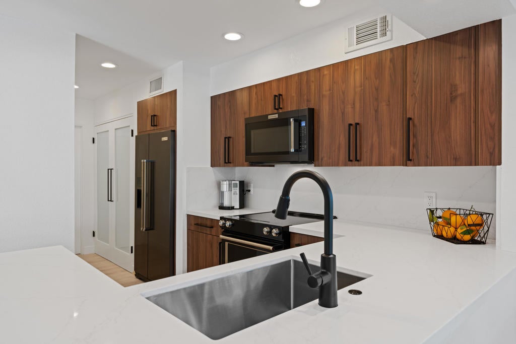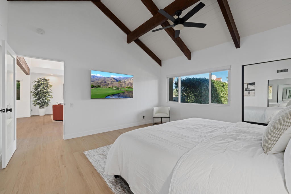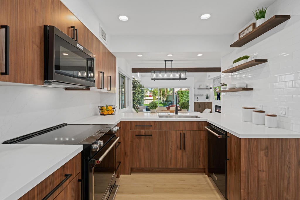This Spectacular 2-bedroom plus office/den, 2-bathroom retreat in Mission Hills Country Club has undergone a stunning modernization, featuring a range of designer upgrades. From the open kitchen with quartz counters and high-end appliances to the spacious great room with impressive features like an electric fireplace and wet bar, this property offers a luxurious living experience. The primary bedroom with its redesigned spa bathroom and ample closet space is sure to provide a comfortable retreat. Including furnishings, TVs, and artwork could make it a turnkey solution for enjoying the country club lifestyle. If you're considering this property, it's worth exploring further to see if it meets all your needs and preferences. Long Term Lease.