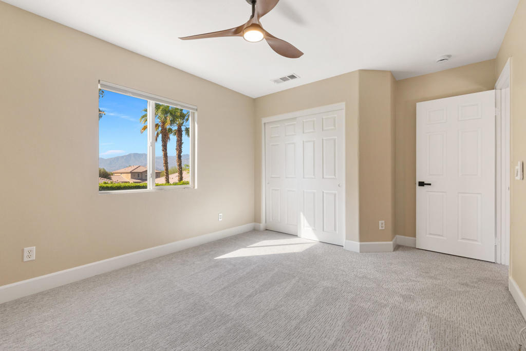Discover this beautifully upgraded 4-bedroom, 3-bathroom home with a flexible bonus room, located in the highly sought-after Paradiso community in Indio. Offering 2,439 sq ft of refined living space on an oversized 8,700+ sq ft lot, this move-in-ready residence perfectly blends style, comfort, and functionality. This open-concept home features a stunning redesigned fireplace with imported Italian tile, brand new flooring, and a well-appointed kitchen with granite countertops, refinished cabinets, new stainless steel appliances, and a spacious island--ideal for entertaining or everyday living. Thoughtful updates throughout include fresh interior paint, brand new carpeting upstairs and on the staircase, updated ceiling fans and faucets, and a brand-new shower enclosure in the primary suite. Tile flooring runs through the common areas, and a dedicated upstairs laundry room adds convenience. The primary suite offers a serene retreat with a soaking tub, separate shower, and dual vanities, while three additional bedrooms and a flexible downstairs bonus room provide space for family, guests, or a home office. Step outside to enjoy the beautifully landscaped backyard with a covered patio, perfect for relaxing or entertaining. Additional features include a 3-car garage (2-car plus tandem) and low HOA dues. Nestled in a quiet, well-maintained neighborhood close to shopping, dining, and excellent schools, this home is a rare opportunity to own in one of Indio's most desirable communities. (Some photos are virtually staged).