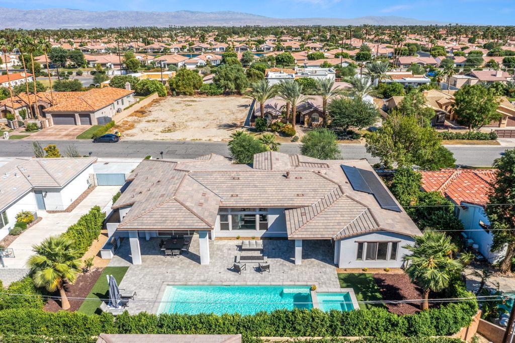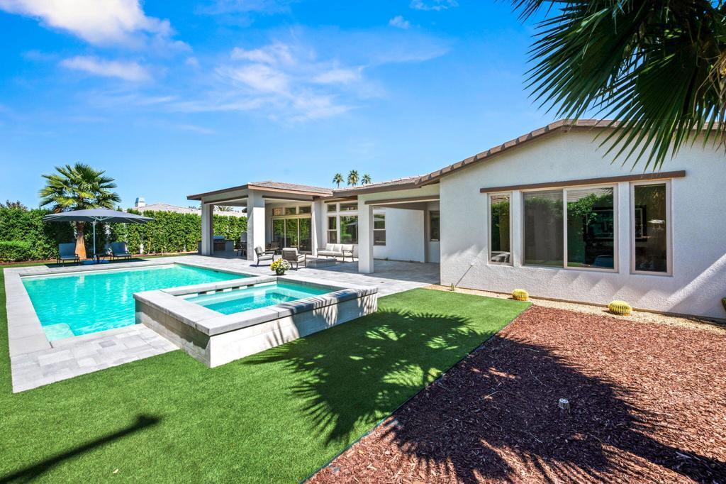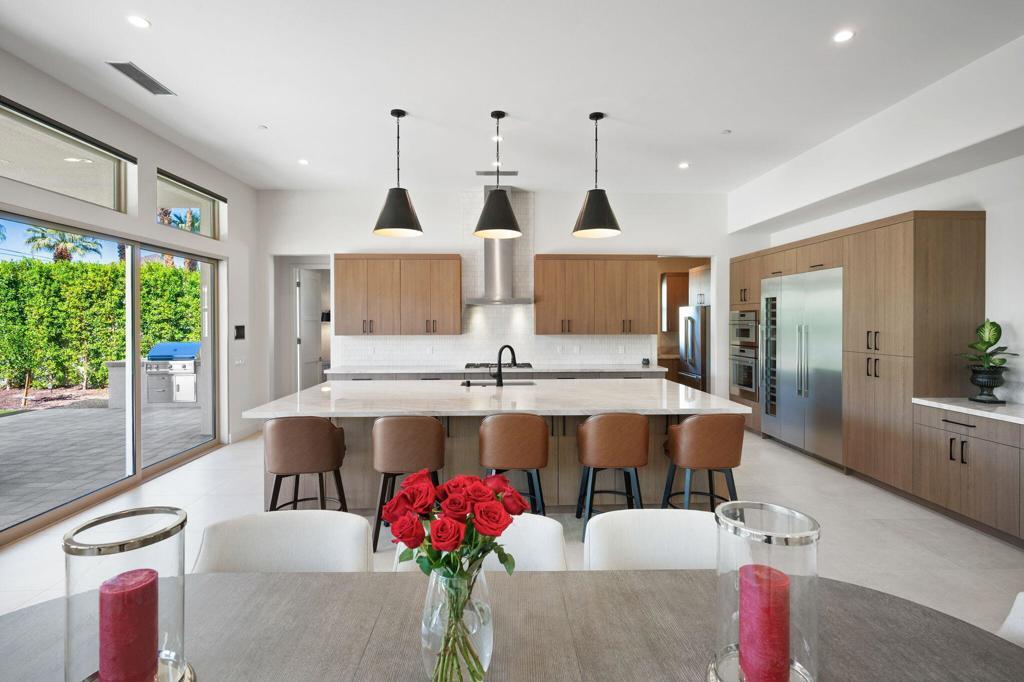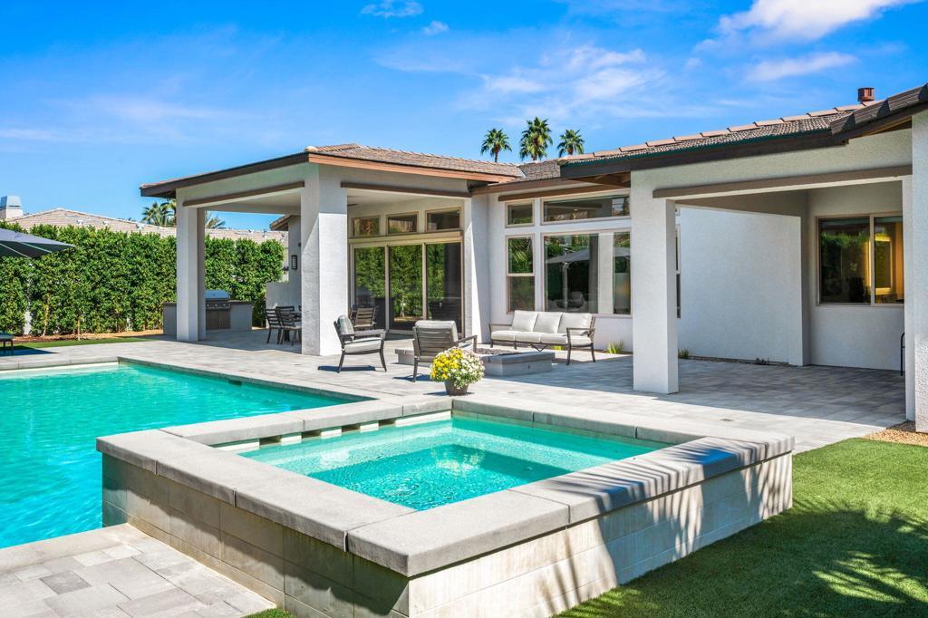 Stunning newer home in Desert Club Estates, just minutes from Old Town La Quinta.This modern luxury residence offers open-concept living with 12-foot ceilings and a wall of windows that fill the great room with natural light. In evening, enjoy a warm, inviting atmosphere with a fireplace and motorized window coverings.The chef's kitchen features top-of-the-line Thermador appliances, Taj Mahal quartz countertops, and a separate prep kitchen with a second Thermador refrigerator and walk-in pantry. Perfect for entertaining or everyday living.The primary suite is your private retreat, complete with a spa-style bathroom and direct access to a Tessera designed outdoor space featuring mountain views, a saltwater pool and spa, fire pit, and built-in grilling station.Each secondary bedroom includes an ensuite bath and walk-in closet, offering comfort and privacy for guests.Additional highlights:Owned solar system (energy savings)No HOAThree car garage pre-wired for EV chargingPaver driveway and walkwaysOffered furnished and move-in ready.Enjoy the best of desert living with modern design, luxury finishes, and a prime location near dining, shopping, and golf.Call Janice at (760) 574-4496 to schedule your private showing today to experience this exceptional La Quinta Home