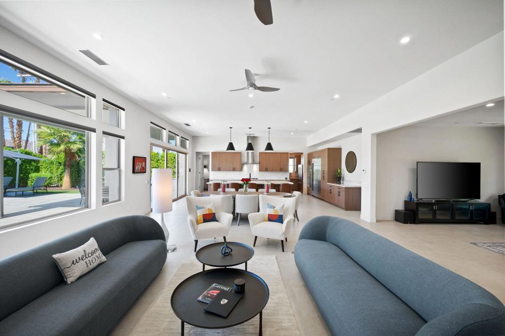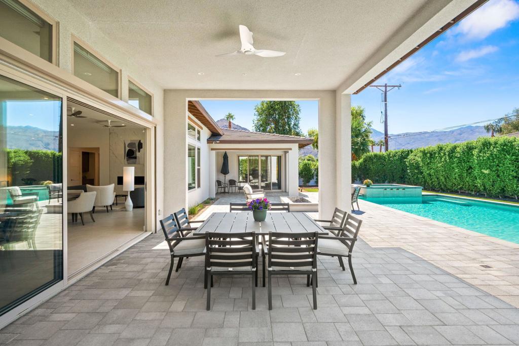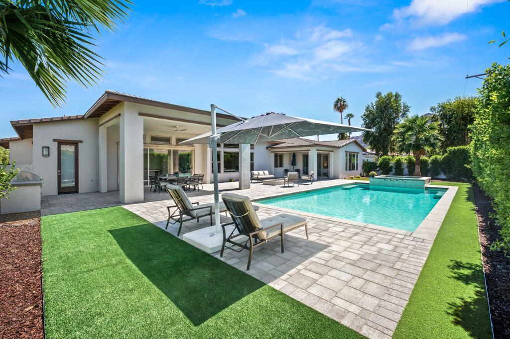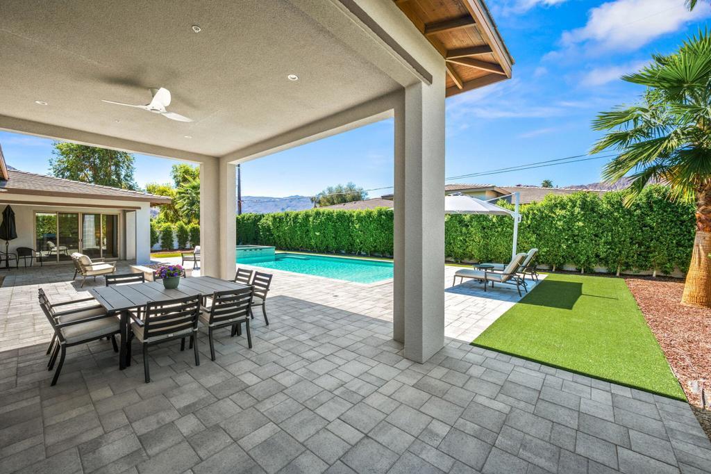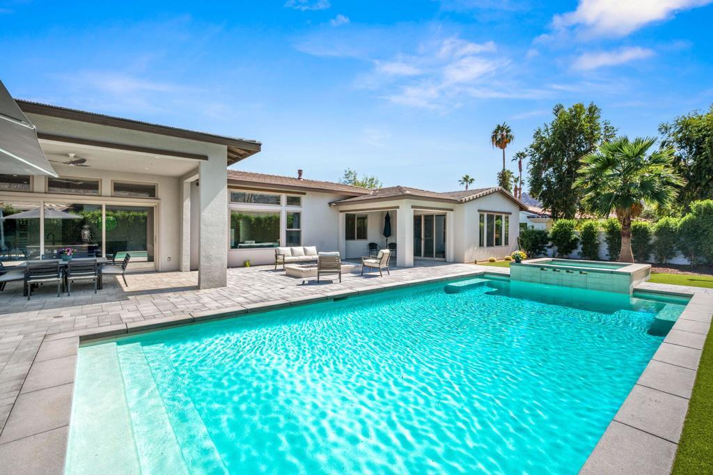 Stunning newer home in Desert Club Estates, just minutes from Old Town La Quinta.This modern luxury residence offers open-concept living with 12-foot ceilings and a wall of windows that fill the great room with natural light. In evening, enjoy a warm, inviting atmosphere with a fireplace and motorized window coverings.The chef's kitchen features top-of-the-line Thermador appliances, Taj Mahal quartz countertops, and a separate prep kitchen with a second Thermador refrigerator and walk-in pantry. Perfect for entertaining or everyday living.The primary suite is your private retreat, complete with a spa-style bathroom and direct access to a Tessera designed outdoor space featuring mountain views, a saltwater pool and spa, fire pit, and built-in grilling station.Each secondary bedroom includes an ensuite bath and walk-in closet, offering comfort and privacy for guests.Additional highlights:Owned solar system (energy savings)No HOAThree car garage pre-wired for EV chargingPaver driveway and walkwaysOffered furnished and move-in ready.Enjoy the best of desert living with modern design, luxury finishes, and a prime location near dining, shopping, and golf.Call Janice at (760) 574-4496 to schedule your private showing today to experience this exceptional La Quinta Home
