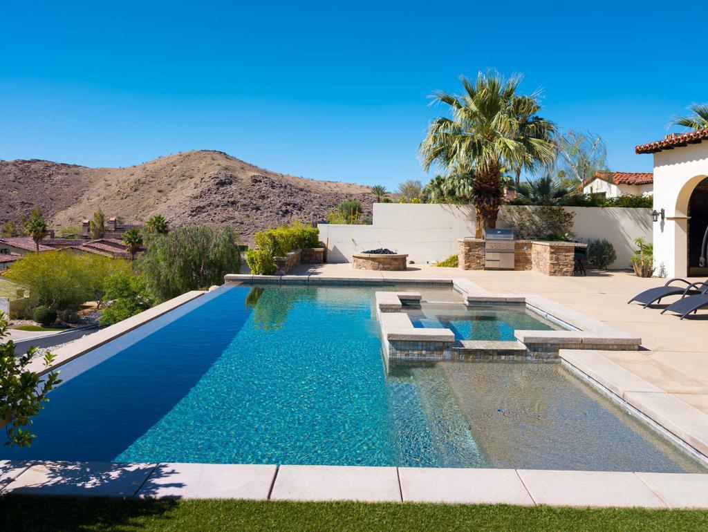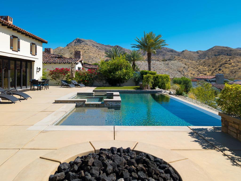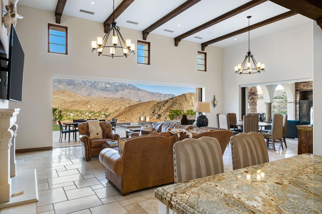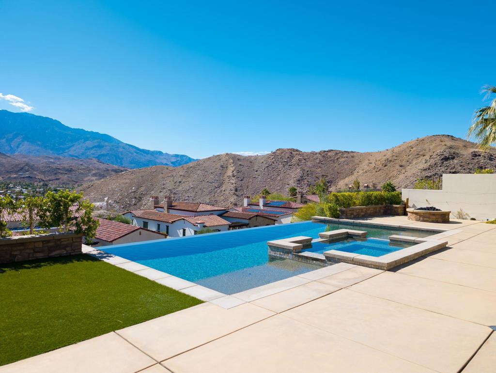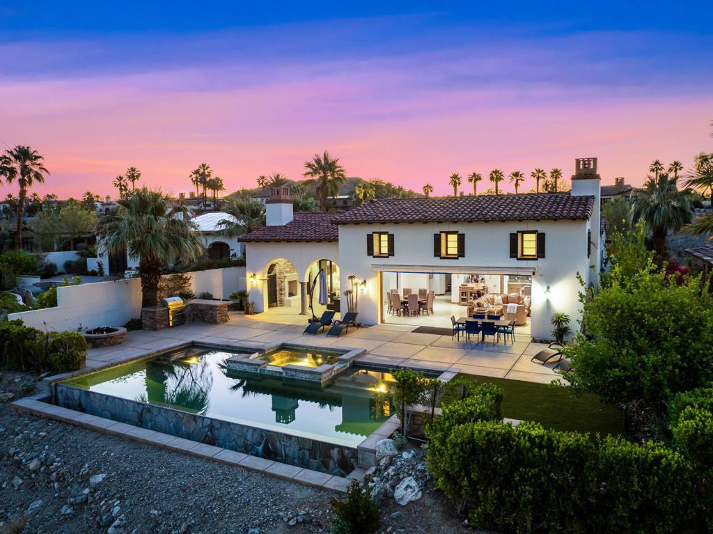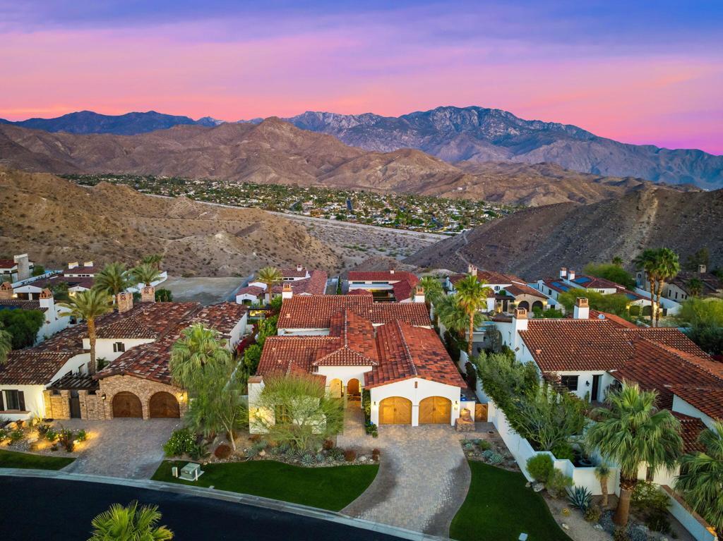 Everything you want in a home, plus privacy, quietude, and stunning across-valley mountain views. Set in sought-after Villas of Mirada, a charming, gated community nestled among the foothills of lovely Rancho Mirage, and central to everything. The spacious primary suite features a luxury bathroom, deep walk-in closet, and opens through pocket doors to a covered loggia with fireplace and breathtaking panoramas. A secondary suite has it all. And an additional, third bedroom suite shares a bathroom with a fourth bedroom set up as a customized-media-room/remote-working-office (with Murphy bed). A gourmet kitchen with sit-up island beckons, fully equipped with Wolf and Sub-Zero appliances. The open and light great room with soaring ceilings engenders a charming yet contemporary feel, with wall-spanning pocket doors, motorized blinds, custom Travertine floors, and beautiful hearth fireplace. And for total, all-season comfort, a four zone HVAC system awaits. The over-sized lot frames a large and attractive entertaining patio with pebble finish, infinity-edge pool & spa overlooking unparalleled, eye-popping vistas. A true Desert getaway, 43 Mount San Jacinto Circle offers tranquility days and sparkling night lights that amaze! Nearby, the prestigious Ritz-Carlton Hotel offers residents exclusive discount privileges.