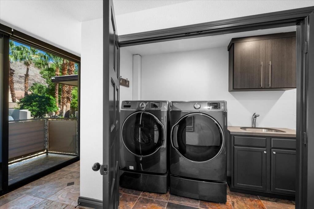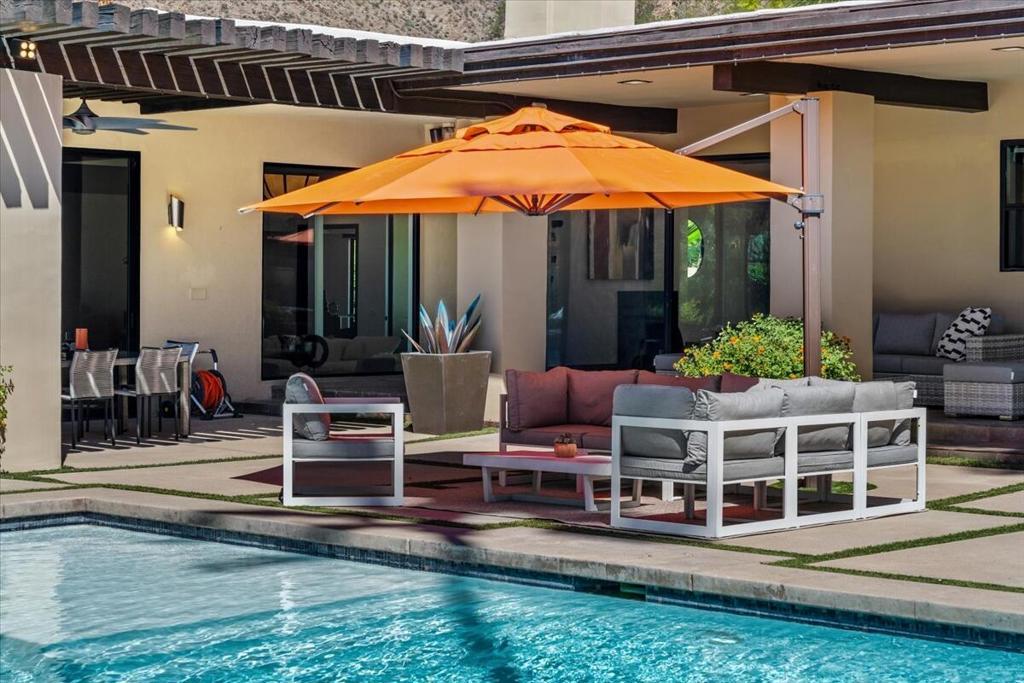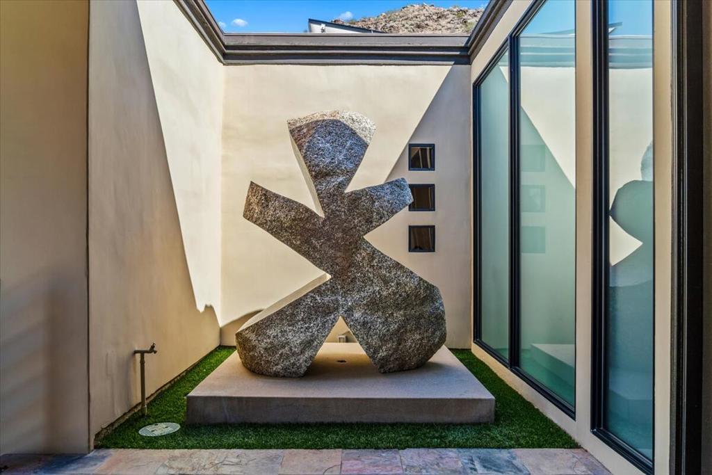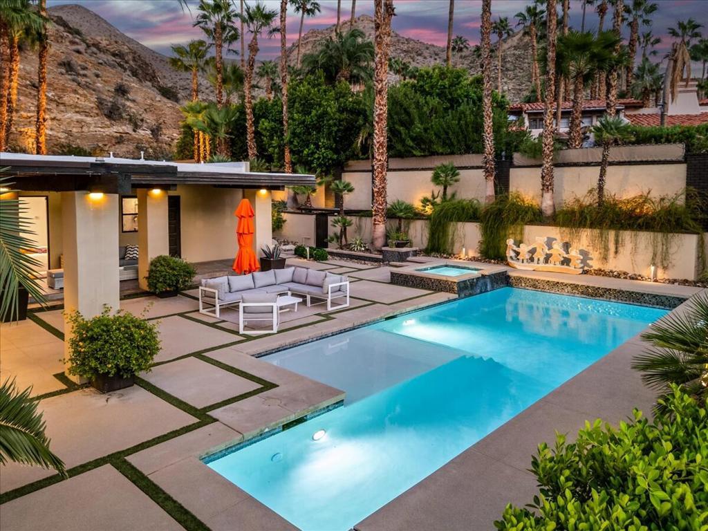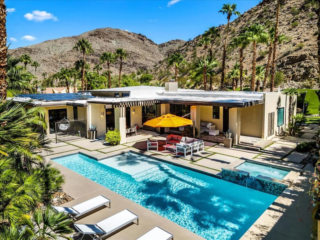An Architectural Experience in Andreas HillsPerched on a quiet cul-de-sac in South Palm Springs' exclusive Andreas Hills, this 6,252 sq. ft. custom contemporary is where bold architecture meets effortless desert living. Set on fee land (you own it!) and surrounded by dramatic mountain views, the home delivers complete privacy and a seamless indoor/outdoor connection that defines Palm Springs luxury.Walls of glass open to a resort-style backyard, newly resurfaced pool and spa, a playful mini-golf area, rock waterfall, misted lounge, and multiple spaces to entertain or unwind. Whether it's sunset cocktails or a lazy pool day, this home was built for the art of living well.Inside, soaring ceilings and sunlit open spaces showcase a chef's kitchen with a massive island, abundant prep space, and perfect flow into the great room. Five bedrooms, four full baths plus a powder room, and a three-car air conditioned garage balance luxury and everyday comfort.A private gym, a media room wired for projection and surround sound, and freshly painted interiors give the home a move-in-ready feel. With paid solar, a natural-gas generator, and a recent pre-listing inspection (repairs done), it's peace of mind and Palm Springs cool in one package.In a market of look-alikes, this one stands apart, architectural, dramatic, and perfectly positioned in one of the city's most desirable enclaves. Own a home that's as bold and inviting as the desert itself.