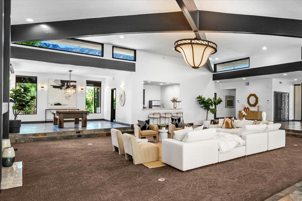 High Ceilings, Recessed Lighting, Bar, Bedroom on Main Level, Walk-In Closet(s), Beamed Ceilings, Cathedral Ceiling(s), Sunken Living Room, Walk-In Pantry, Wet Bar