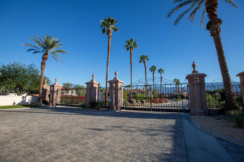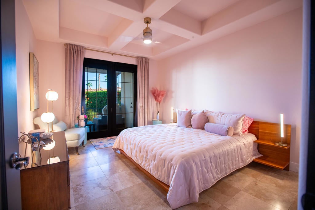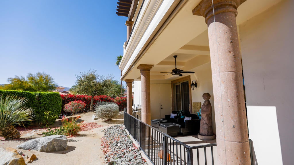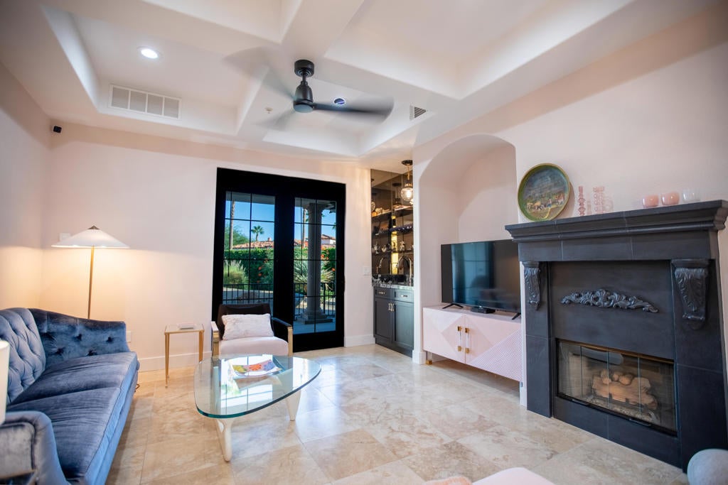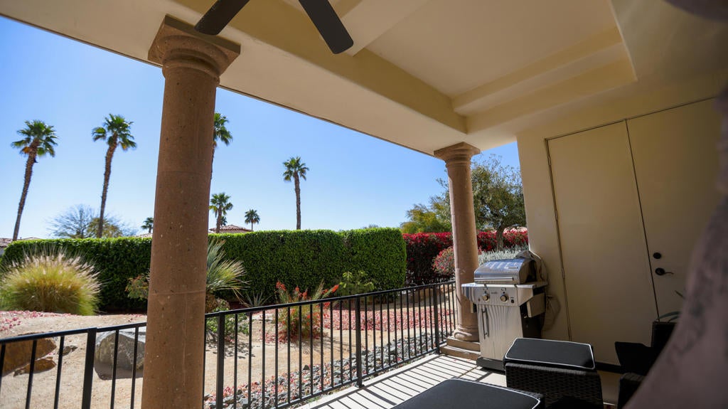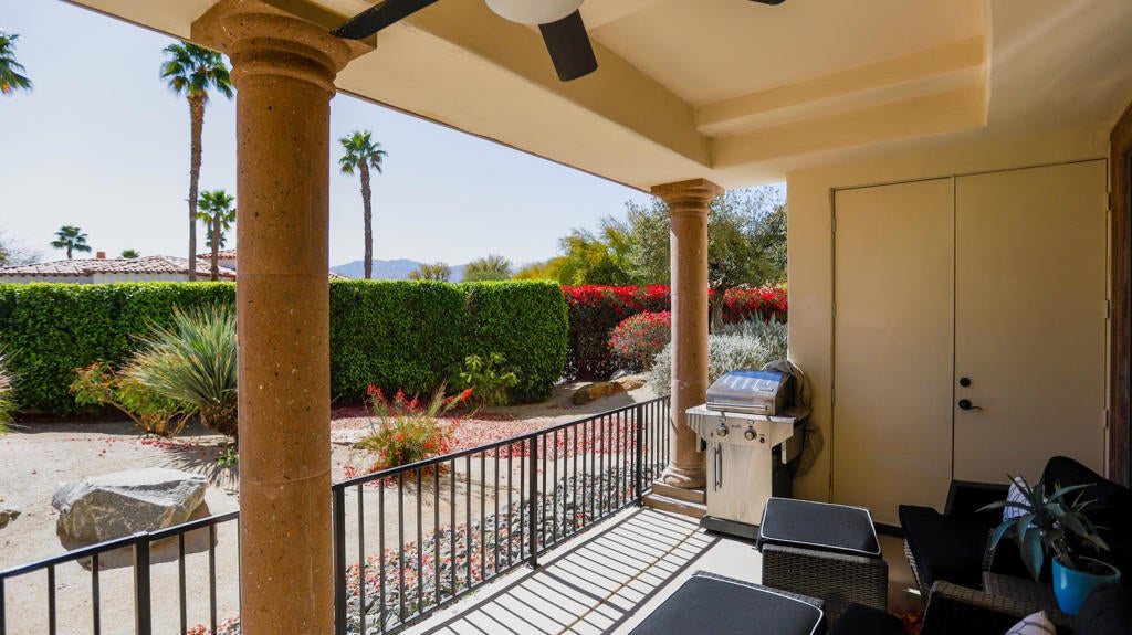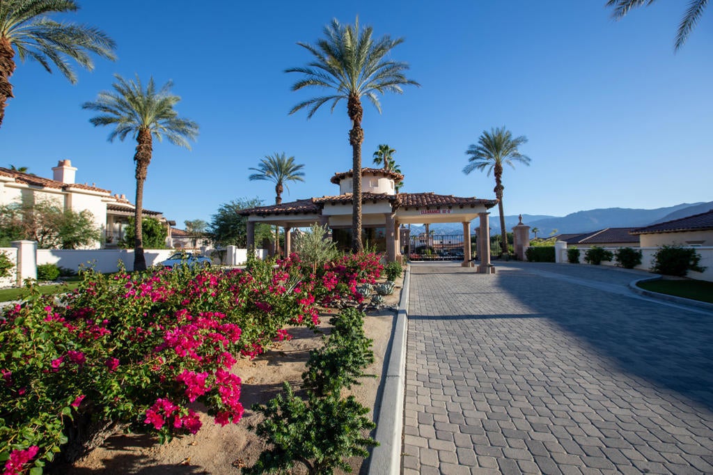 A Rare Gem in Villa Portofino - Where Elegance Meets Comfort! Welcome FIRST CLASS!Step into a world of refined luxury with this newly reimagined home, showcasing a $140,000 designer remodel that blends modern sophistication with effortless comfort. Every detail has been thoughtfully curated--brand new cabinetry, stone countertops, premium fixtures, and high-end appliances create an environment designed for those who expect the very best.At the heart of the home, a striking black-and-white marble waterfall island anchors the chef's kitchen, complemented by professional-grade stainless steel appliances. Custom storage solutions, organized closets, and a mirrored barn door concealing the washer and dryer enhance both beauty and functionality. The spa-inspired bath features bespoke tilework, a freestanding soaking tub, and an ambiance that rivals the finest retreats.Seamless indoor-outdoor living awaits on the private patio, complete with motorized sun shades, a barbecue area, and panoramic mountain views--ideal for both relaxing and entertaining. Offered fully furnished, this residence invites you to simply arrive and begin enjoying the good life.Villa Portofino offers an unmatched lifestyle with a 30,000 sq. ft. clubhouse boasting two restaurants, a private theater, fitness center, game room, pool & spa, bocce ball, shuffleboard, and a vibrant social calendar. HOA dues cover cable, water, trash, landscaping and clubhouse access.Located minutes from El Paseo's luxury shopping and dining, Eisenhower Medical Center, and Bristol Farms, this is not just a home--it's a statement of style and sophistication.