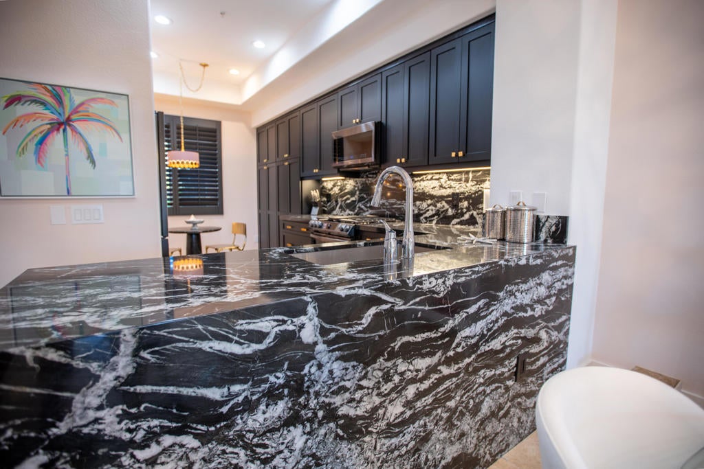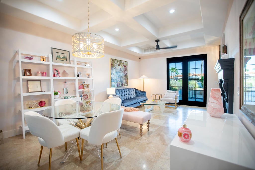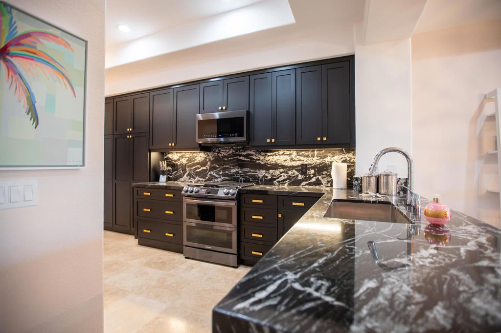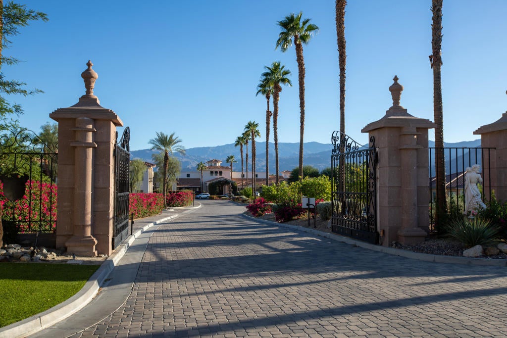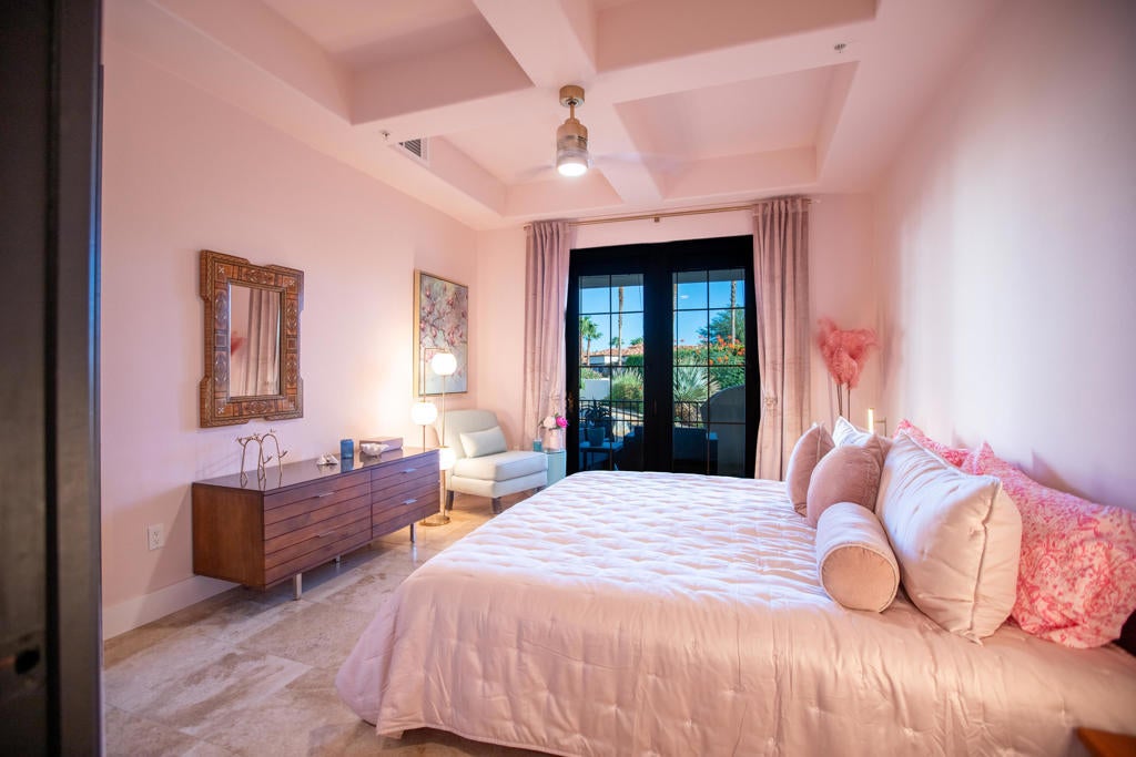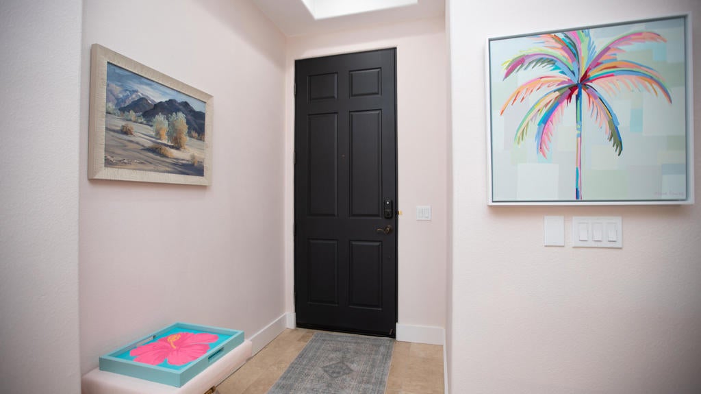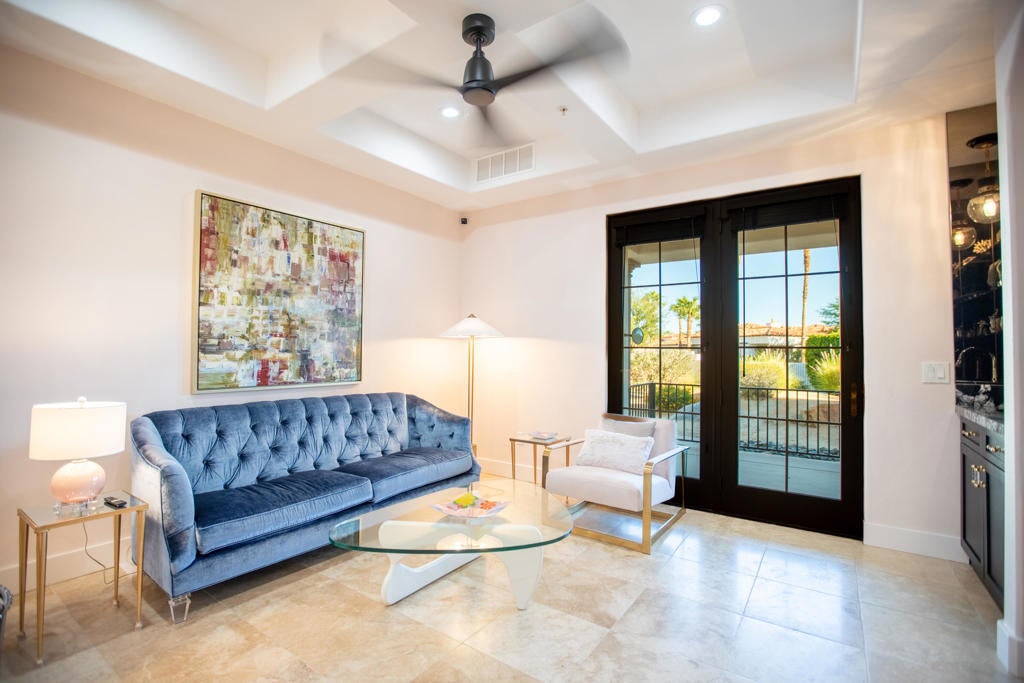 A Rare Gem in Villa Portofino - Where Elegance Meets Comfort! Welcome FIRST CLASS!Step into a world of refined luxury with this newly reimagined home, showcasing a $140,000 designer remodel that blends modern sophistication with effortless comfort. Every detail has been thoughtfully curated--brand new cabinetry, stone countertops, premium fixtures, and high-end appliances create an environment designed for those who expect the very best.At the heart of the home, a striking black-and-white marble waterfall island anchors the chef's kitchen, complemented by professional-grade stainless steel appliances. Custom storage solutions, organized closets, and a mirrored barn door concealing the washer and dryer enhance both beauty and functionality. The spa-inspired bath features bespoke tilework, a freestanding soaking tub, and an ambiance that rivals the finest retreats.Seamless indoor-outdoor living awaits on the private patio, complete with motorized sun shades, a barbecue area, and panoramic mountain views--ideal for both relaxing and entertaining. Offered fully furnished, this residence invites you to simply arrive and begin enjoying the good life.Villa Portofino offers an unmatched lifestyle with a 30,000 sq. ft. clubhouse boasting two restaurants, a private theater, fitness center, game room, pool & spa, bocce ball, shuffleboard, and a vibrant social calendar. HOA dues cover cable, water, trash, landscaping and clubhouse access.Located minutes from El Paseo's luxury shopping and dining, Eisenhower Medical Center, and Bristol Farms, this is not just a home--it's a statement of style and sophistication.